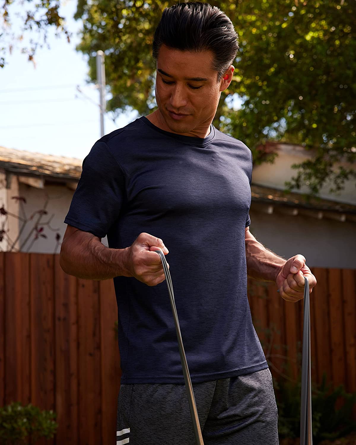 Designed for a comfortable experience. Crew-neck provides a nonrestrictive fit; short-sleeve allows for a wider range of motion
