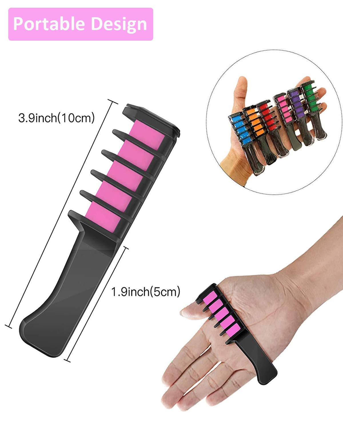 【Easy to Use】With the design of a fixed comb, they are easy to apply to your hair from top to bottom without staining your hands. Keep your hands color free. This hair chalk features a small comb applicator to simply brush on your hair.