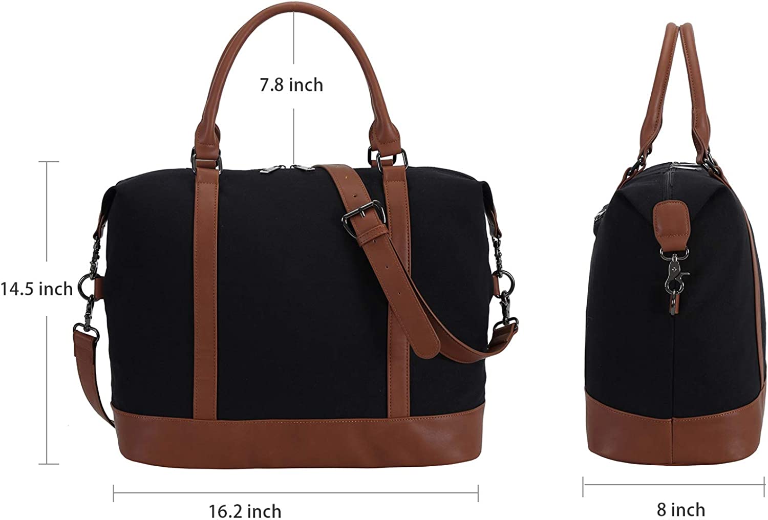 • Size:16.2" Lx 14.5"H x 8"W. Great size as small overnight bag, short journey bag, daily use shoulder bag, gym tote bag also as school bag, work bag, day trips. Back side sleeve allows you to slide it over rolling suitcase/luggage/roller bag handle.