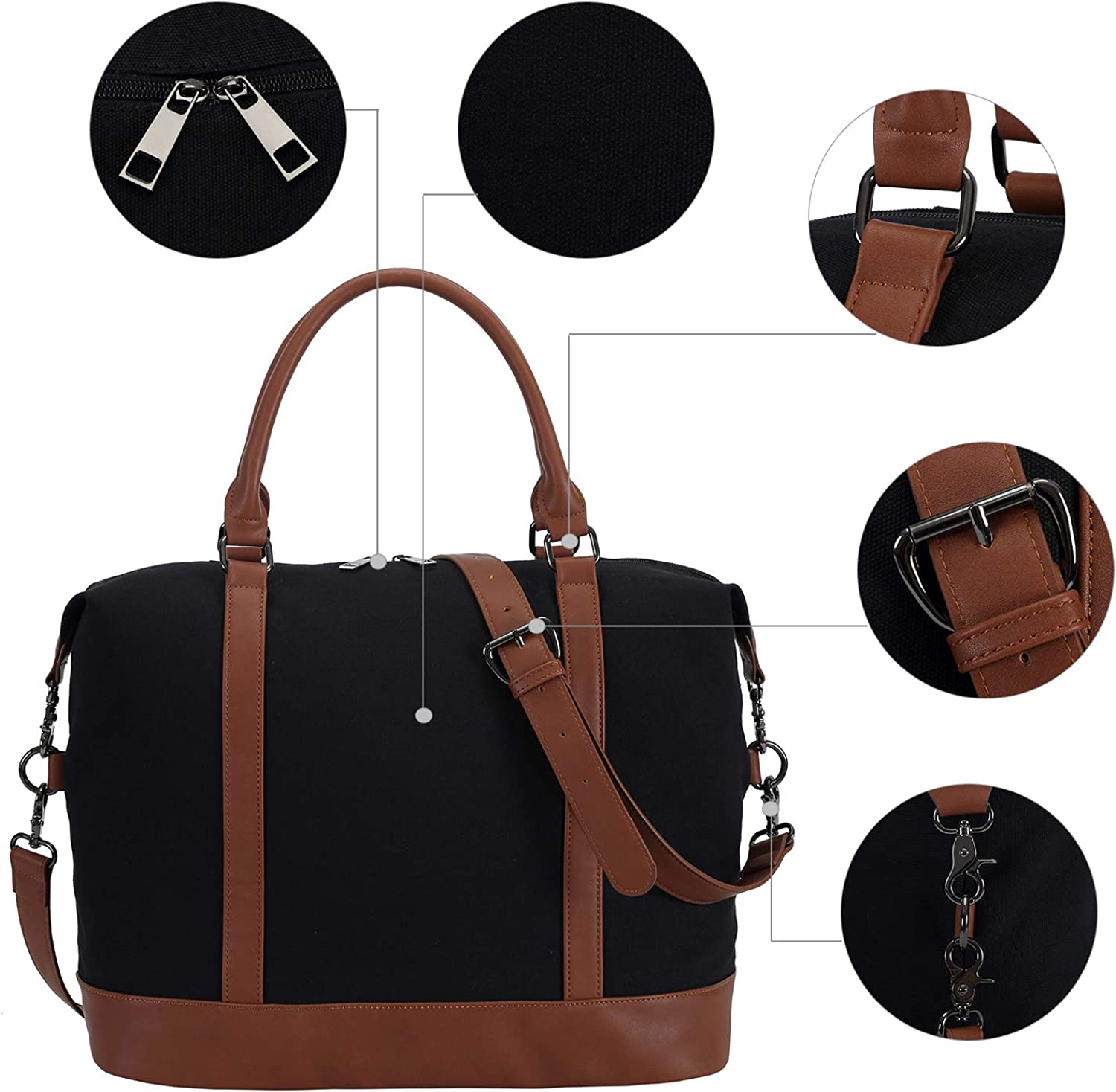 Bluboon Women Ladies Canvas Weekender Bag Overnight Carry-on Tote Duffel in Trolley Handle