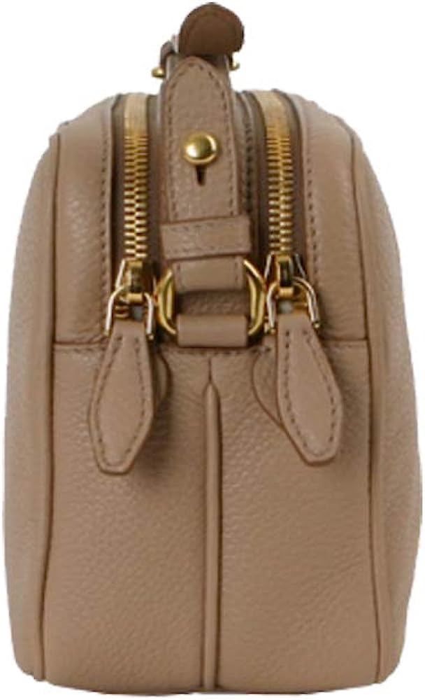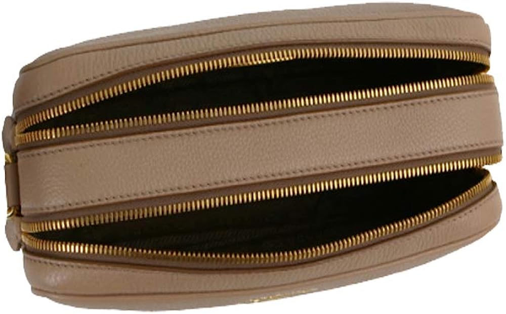 The bag features a gold Prada Milano logo on the front and an adjustable leather strap. The two zipper compartments open to a spacious jacquard lined interior that allows for convenient storage and organization. This Prada handbag is great for everyday use with the distinctive quality and style of Prada! Model Number: 1BH079. Cammeo Beige. Vitello Phenix Grain Leather. Gold-tone Hardware. Prada Milano Logo. Zipper Fastening. Two Zipper Compartments.