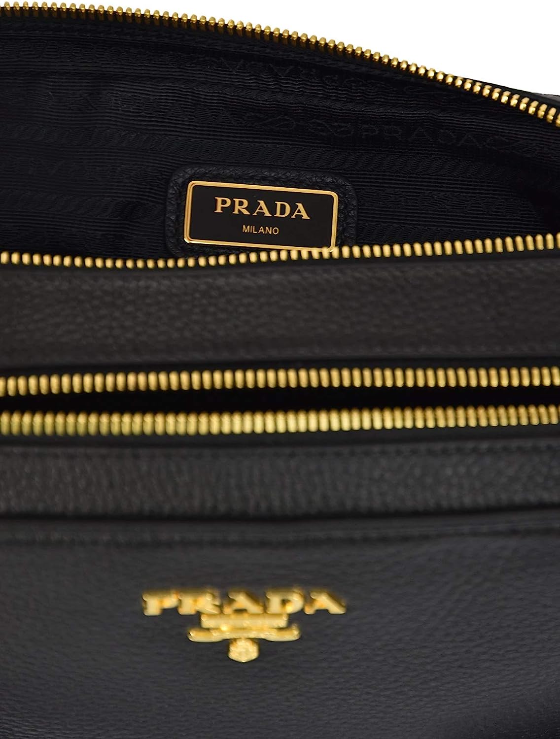 Prada Women's Black Bandoliera Vitello Phenix Leather Crossbody Bag 1BH079