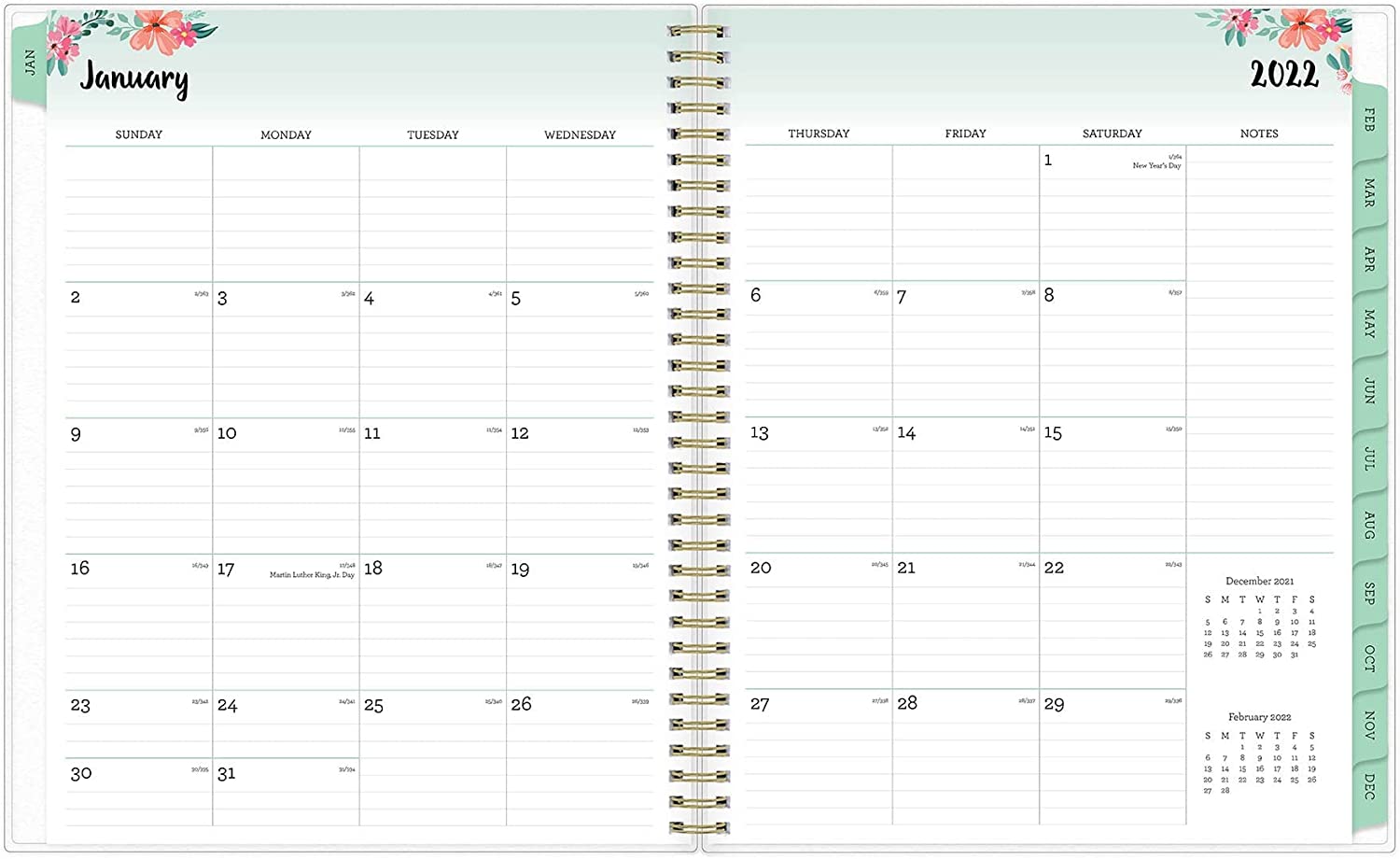 Bring order to your busy life with the Laurel Planner and its springtime motif to give your schedule a fresh start. Thick, premium-quality pages reduce ink bleed-through to ensure your writing stays legible. Two-page-per-week spread features ruled, daily blocks for easy handwriting. Monthly view per two-page spread includes a notes section for important projects. Monthly tabs are coated for durability. Durable, frosted flexible front cover keeps your pages protected throughout the entire year. Double-wire binding allows easy page-turning. Six bonus monthly views allow you to make easy yearly transitions. Planner also includes pages for yearly goals, contacts, reference calendars and extra notes pages. 12-month planner ranges from January to December.