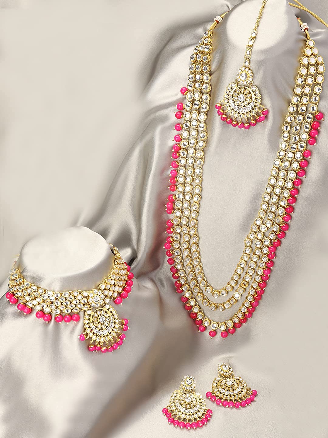 - DIMENSIONS(In Inches): Long Necklace Length - 26", Choker Necklace Length - 10" , Necklace Width - 3", Earring Height - 3", Earring Width - 2.25" , Mang Tika Length - 7" & Mang Tika Width - 2.25"