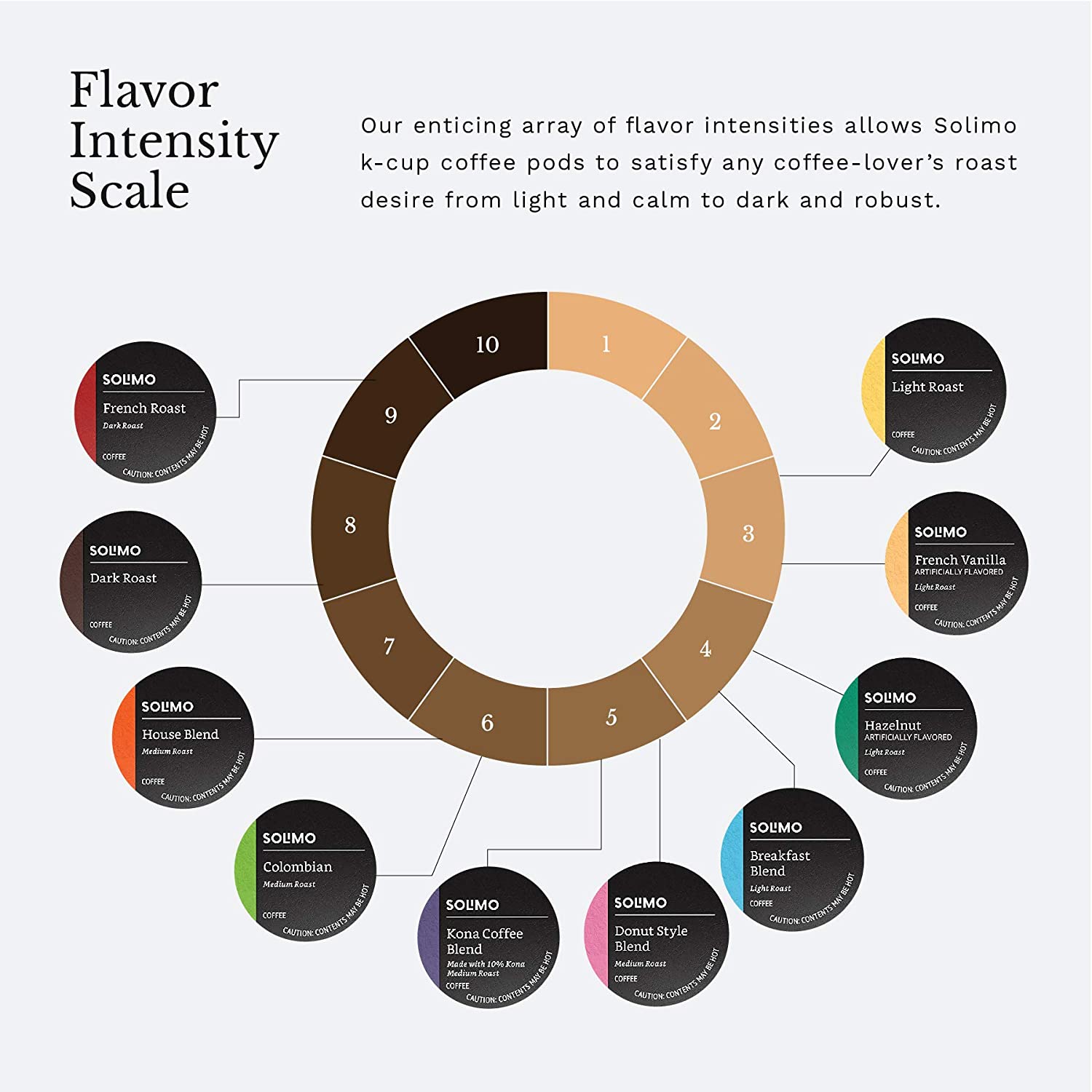 Amazon Brand - 100 Ct. Solimo Variety Pack Light and Medium Roast Coffee Pods (Kona, Breakfast, Donut), Compatible with Keurig 2.0 K-Cup Brewers