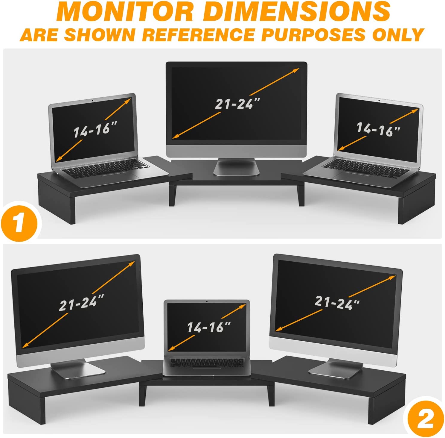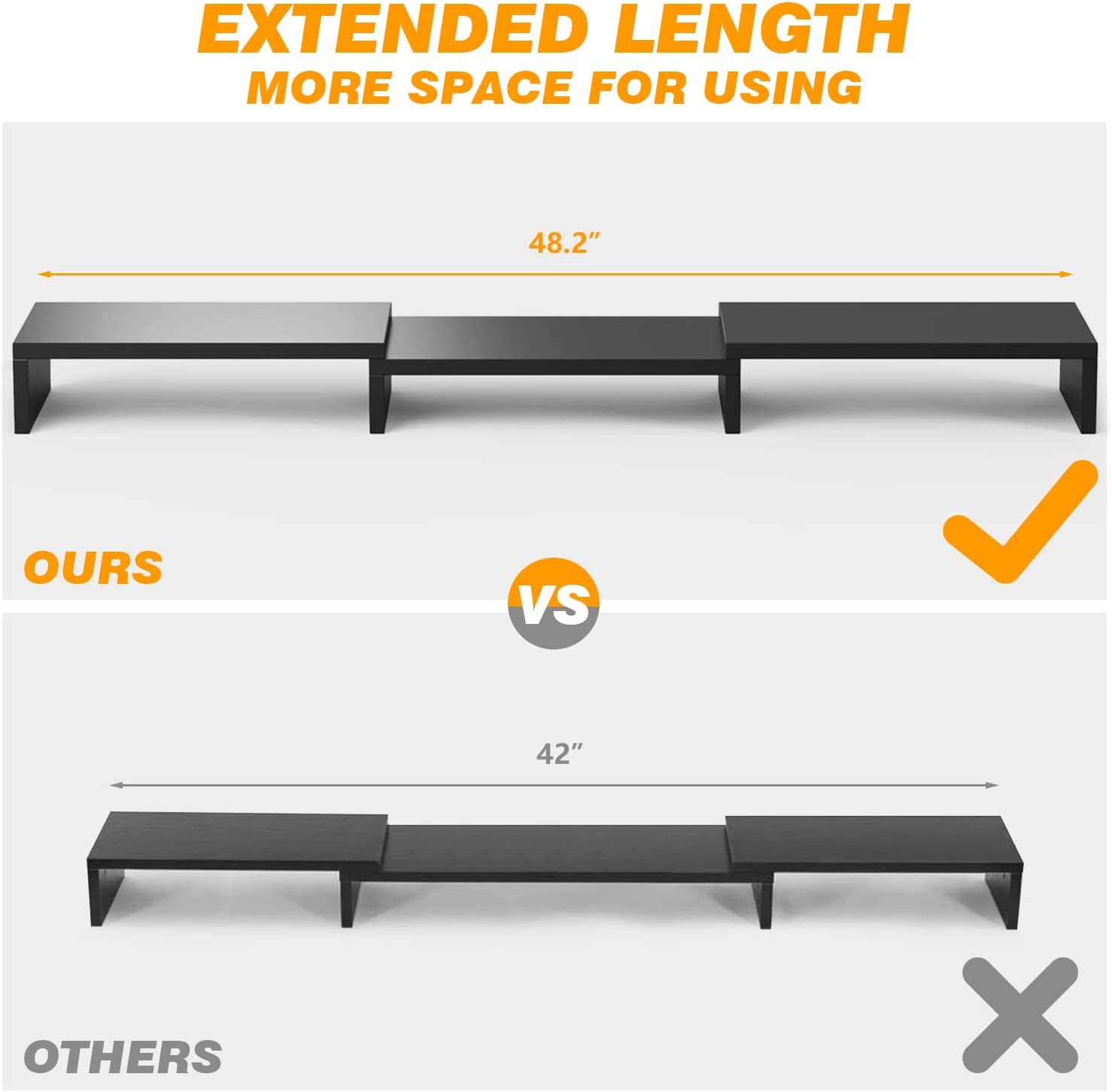 【Customizable 3 Shelf Design】Featuring adjustable length (33-48.2 inch) and angle, this desk computer stand riser can be place on a corner desk or in a straight-line, table like setup, which supports 2-3 monitors while offering enough space underneath for smaller desk essentials, or to tuck your keyboard and mouse away.