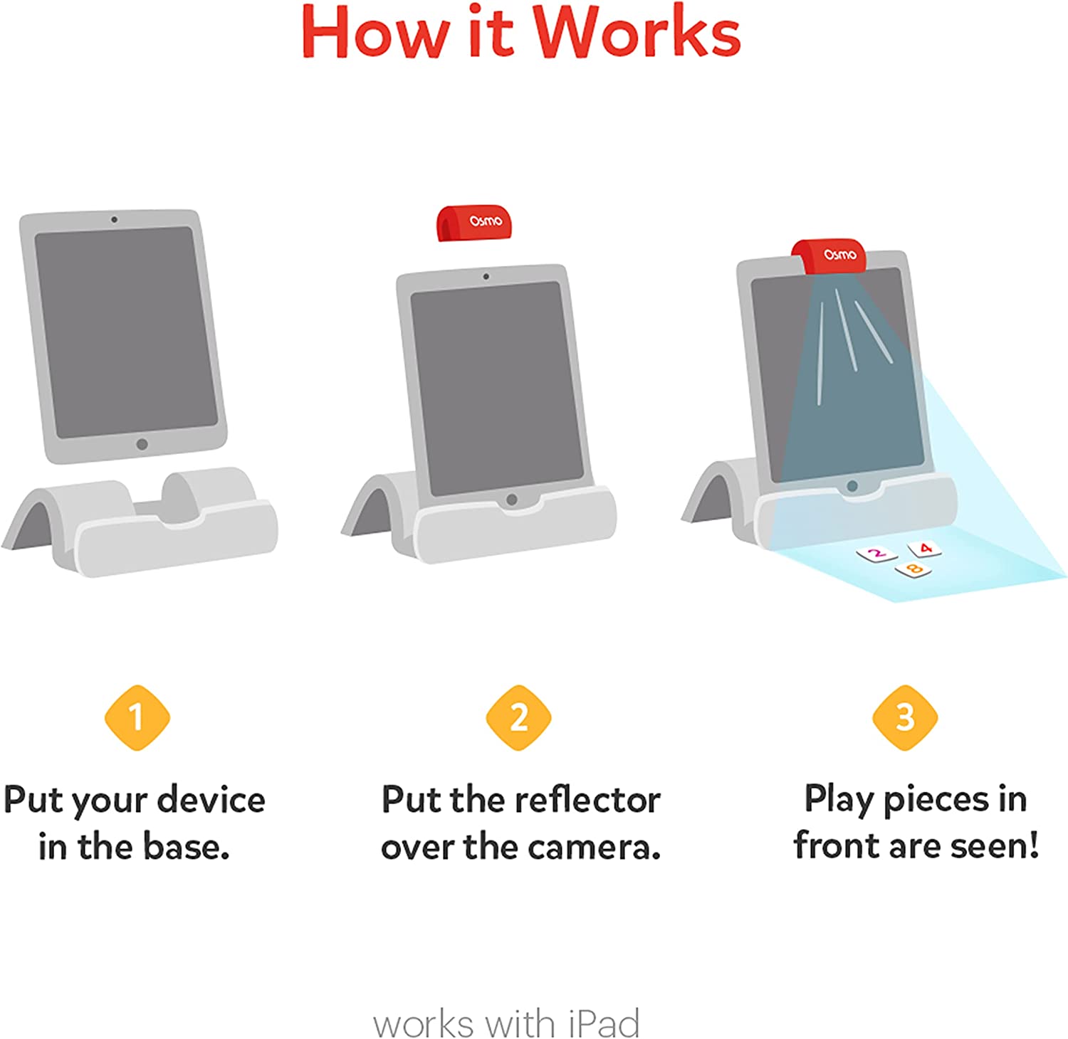 • Actual product packaging may vary from the image displayed. Components within the box remain the same. OSMO IS MAGIC: Fun-filled & award winning learning games. Children interact with actual hand held pieces & an iPad, bringing a child's game pieces & actions to life (No WiFi necessary for game play). An Osmo Base is included, an iPad is not included, both are required for game play.