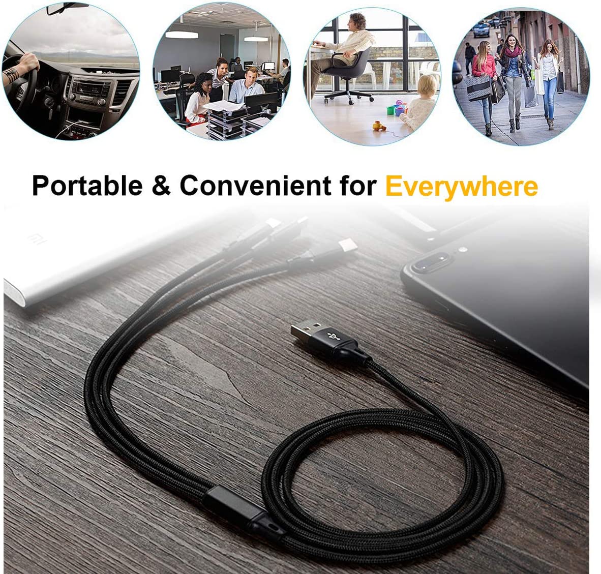 • ✔Perfect Length: 2Pack 4ft multiple phone charging cable enable you to charge your phone at ease, not restricted by the length of cable. And it's super handy to carry. Bring one multi charger cable, meets all your demand.