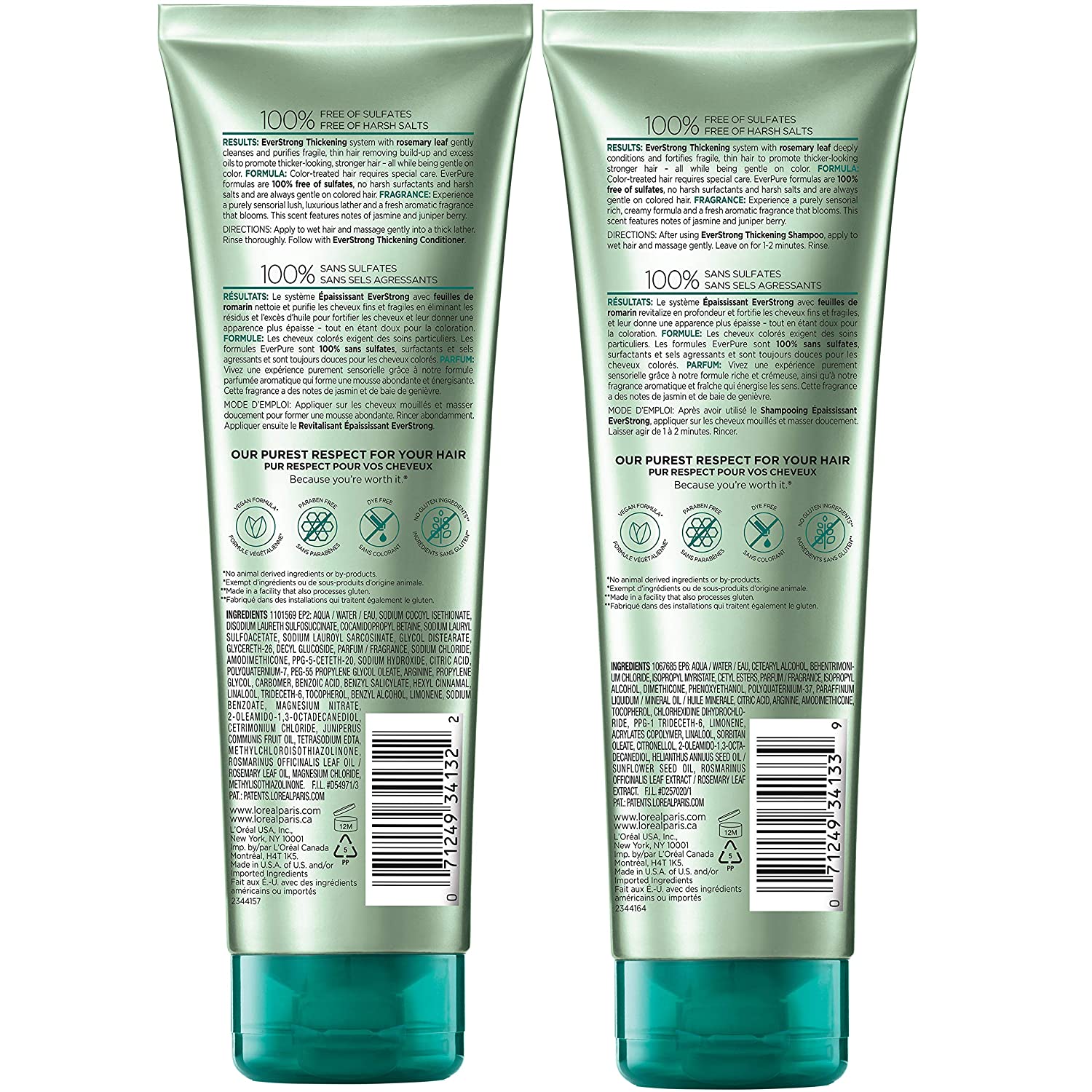 L'Oreal Paris EverStrong Thickening Sulfate Free Shampoo and Conditioner Kit, Thickens + Strengthens, For Thin, Fragile Hair, with Rosemary Leaf, Combo (8.5 Fl; Oz each) (Packaging May Vary)