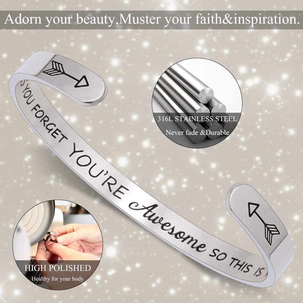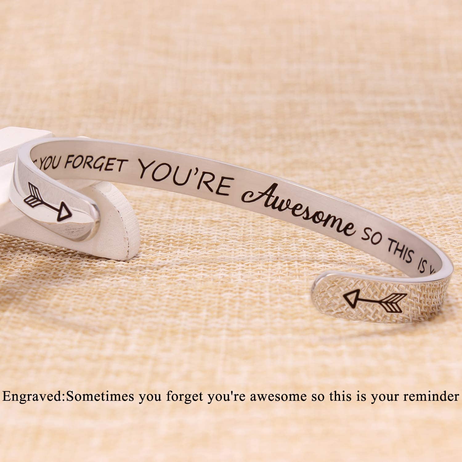 - Meaning:The bracelets for women are engraved inspiratioanl quote.Front arrow signs on ends.You are awesome bracelet, be brave bracelet, uplifting Jewelry,,you got this bracelet,keep going. gifts for her.Bracelets for women,unique gifts for women/girls, friend gifts,friendship bracelets,teen girl gifts.Birthday gifts for women to surprise her.