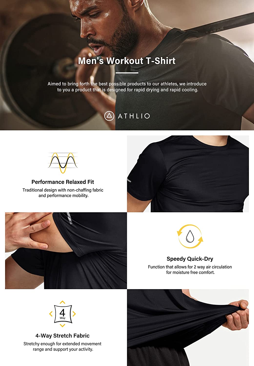 ATHLIO Men's Workout Shirt Series designed for sports & outdoor activities.