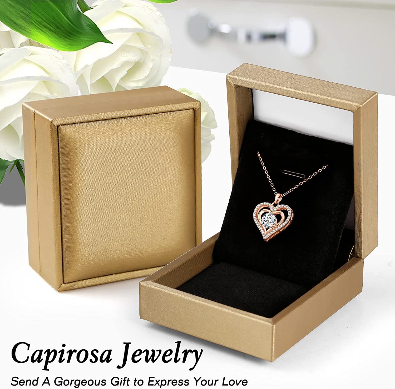 Desimtion Sterling Silver Heart Rose Necklaces for Women,Birthday Mothers Day Jewelry Gifts for Her Girlfriend Wife Mom