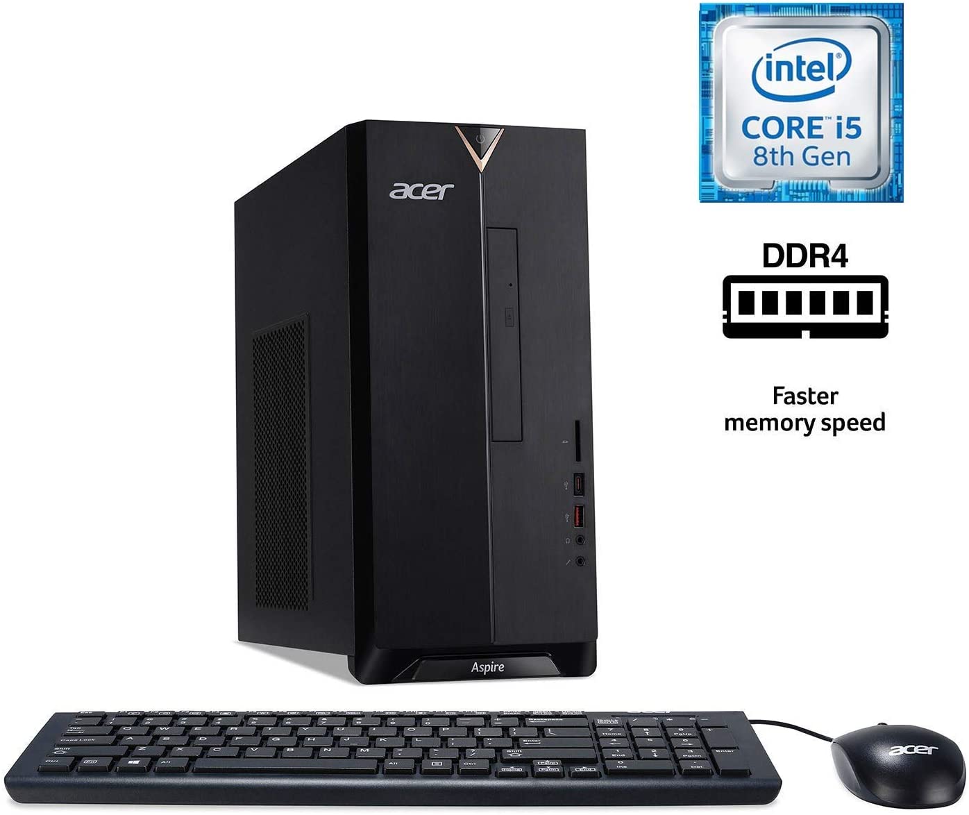 Acer Aspire TC-885-UA92 Desktop, 9th Gen Intel Core i5-9400, 12GB DDR4, 512GB SSD, 8X DVD, 802.11AC Wifi, USB 3.1 Type C, Windows 10 Home, Black