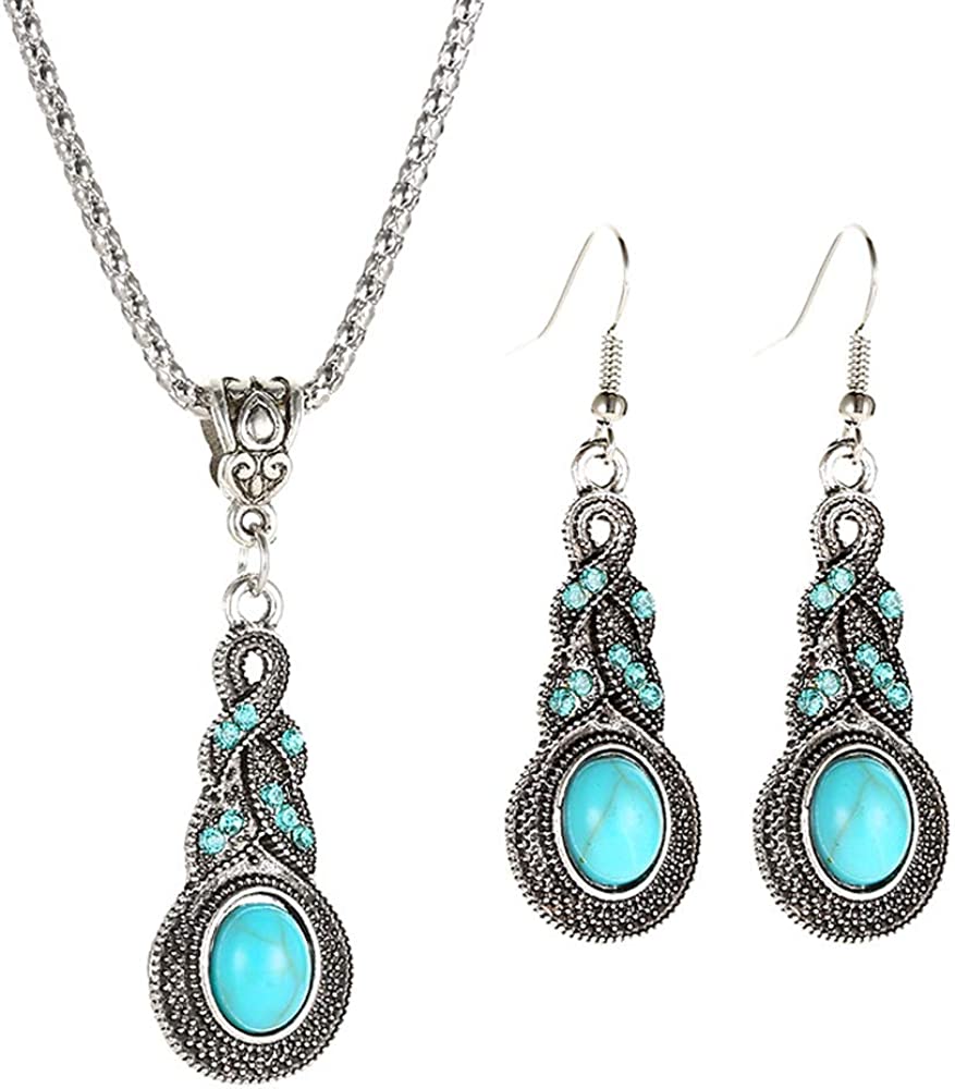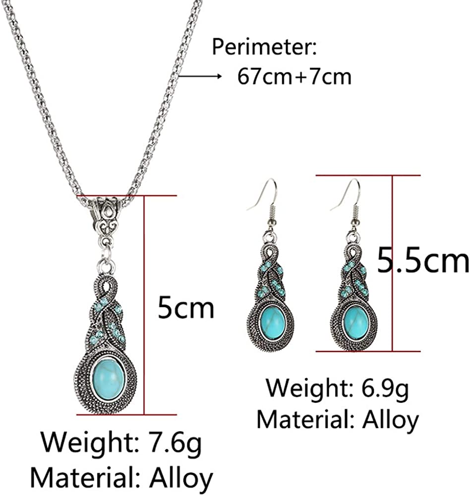 Western Jewelry For Women Green Earrings Irish Dangle Drop Shaped Boho Turquoise Emerald Necklace and Earrings set St. Patrick's Day