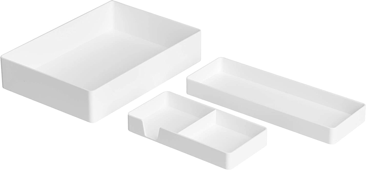 Modular design; stackable with the Amazon Basics Plastic Organizer letter tray, accessory tray, half accessory tray, and small tray (additional items sold separately)