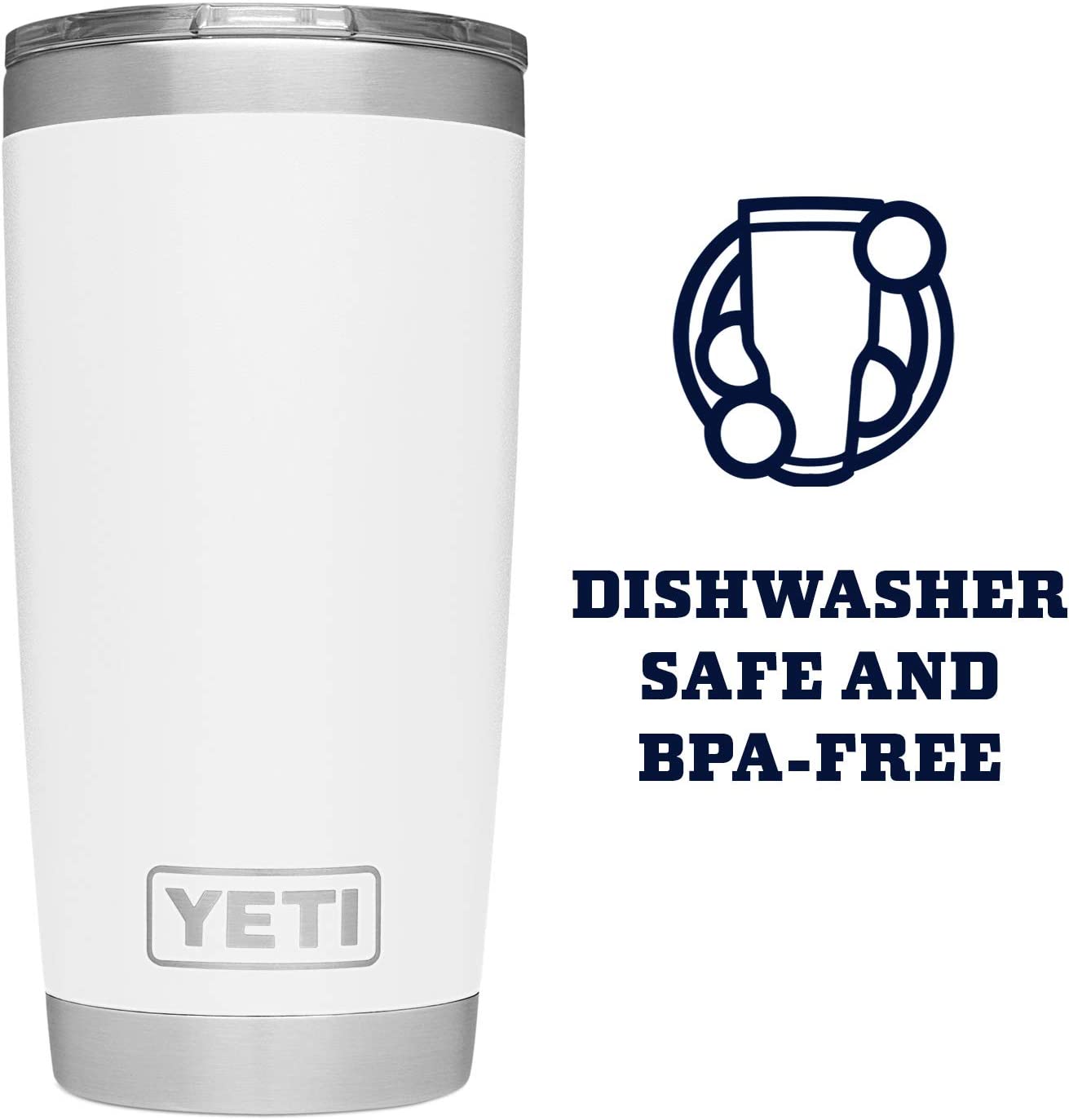 With the Rambler 20 oz. Tumbler, your beverages will stay ice cold or piping hot longer. We over-engineered these double-wall insulated tumblers with an 18/8 stainless steel body, which means your drink still keeps its temperature no matter how much of a beating this cup takes. They’re BPA-free (obviously), have a No Sweat Design to make sure your hands stay dry, and are dishwasher-safe. Plus its crystal-clear lid lets you check your drink status in a flash. Refill, anyone?The YETI 20 oz Rambler Tumbler stands 6 7/8 in high and has a lip diameter of 3 1/2 in. All YETI Tumblers are sized to fit in standard sized cup holders.