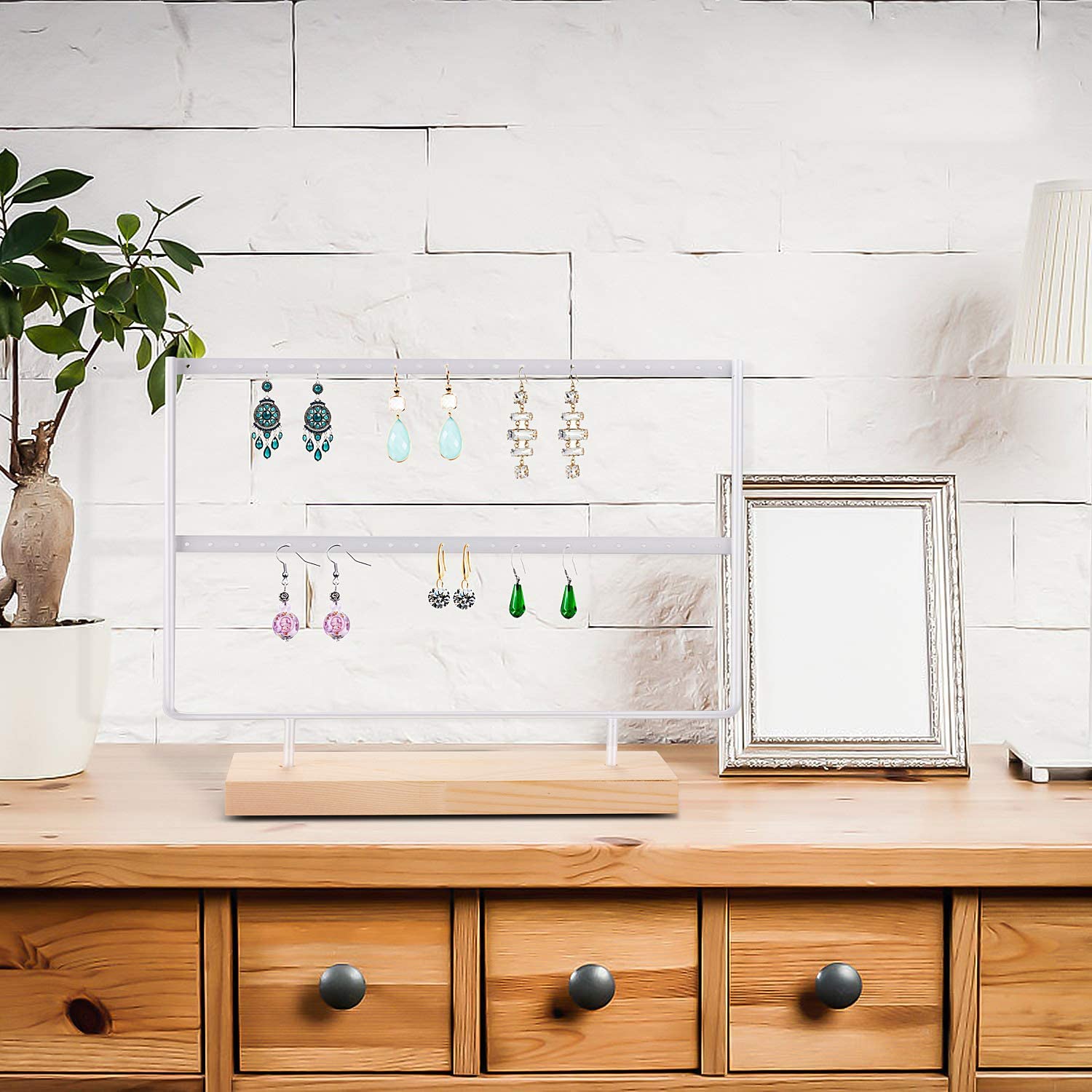 46 Holes FOR EARRINGS- This jewelry rack can hold up to 22 pairs of earrings . You’ll be able to hang up your favourite studs, dangle earrings, and hoops with ease. No longer do you need to worry about losing the backs of your earrings. This holder can accommodate push backs, screw backs, butterfly backs, and locking backs.