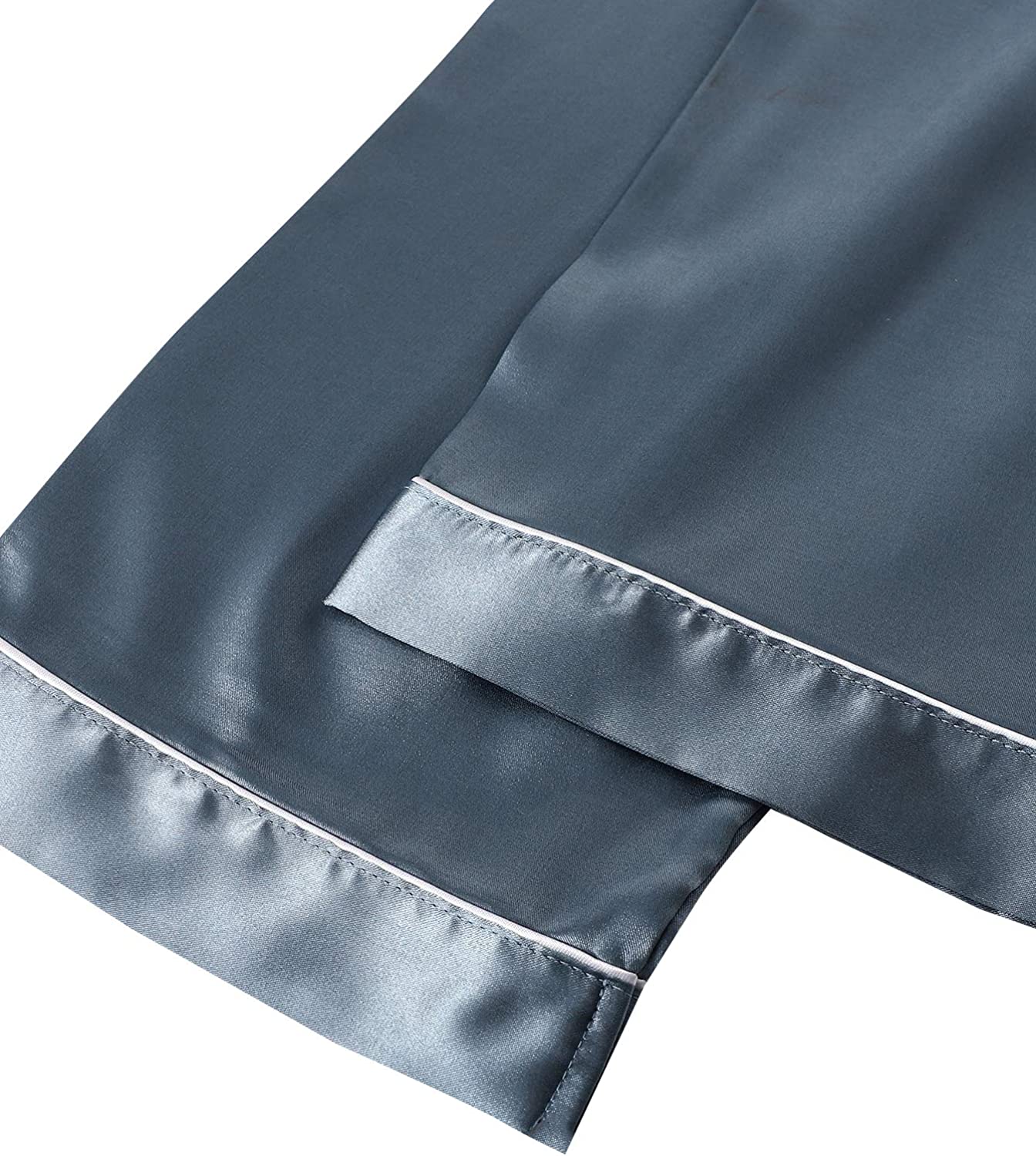 SWOMOG Womens Silk Satin Pajamas Set Long Sleeve Loungewear Two-piece Sleepwear Button-Down Pj Set