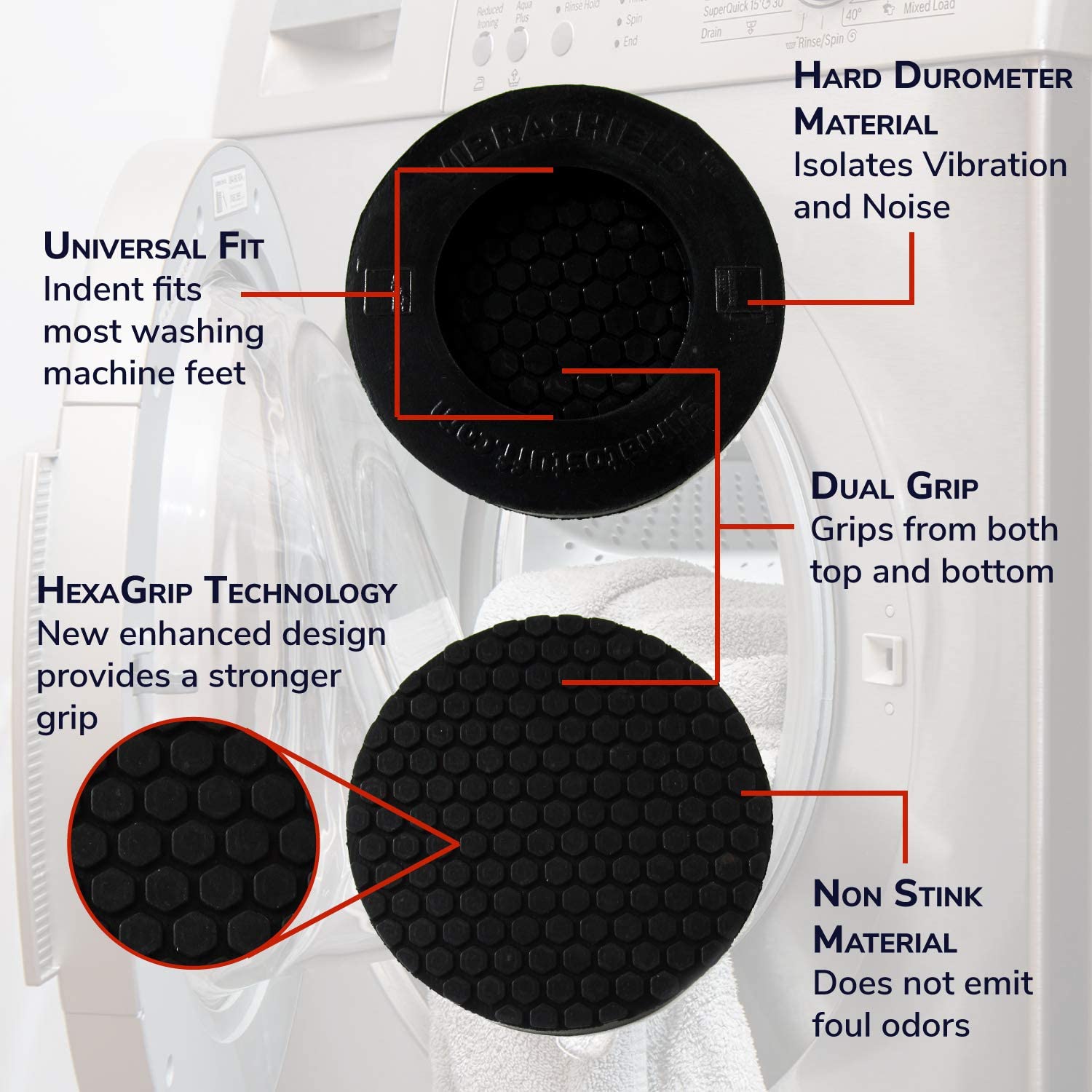 - ? YOU'LL NEVER HAVE TO PUSH YOUR WASHER BACK INTO PLACE ? Our innovative Dual HexaGrip design provides stronger traction from the top & bottom of each pad, preventing your vibrating washer from walking, skidding & moving; Our grip technology provides up to 60% more pad surface area in direct contact with your floor, significantly increasing floor friction compared to similar pads; Our unique top side grip provides extra hold on the feet of your appliance, further minimizing movement & shaking