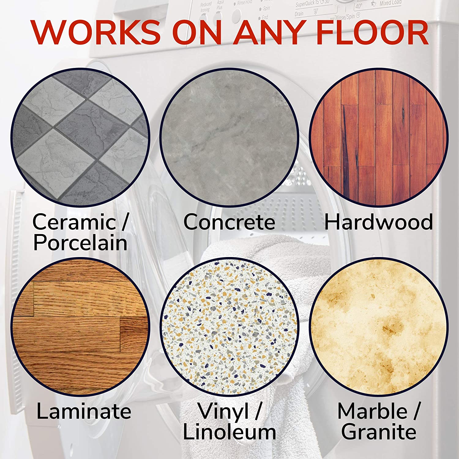 - Protects Floors & Appliances - Absorbs impacts from vibrating appliances to protect floors and the appliance itself from damage.