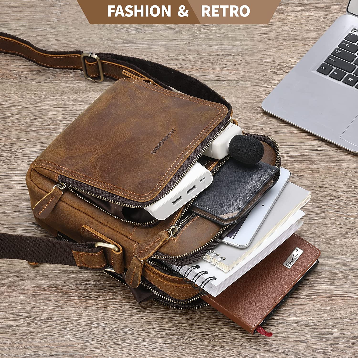 A One Of A Kind Gift: Artful retro leather man bag and classic wild style man purse leather providesa refreshing update to timeless silhouettes. Each crossbody bag in appearance to be as unique as your loved one. The perfect mens messenger bag for birthdays, anniversaries, Father’s Day and Christmas.