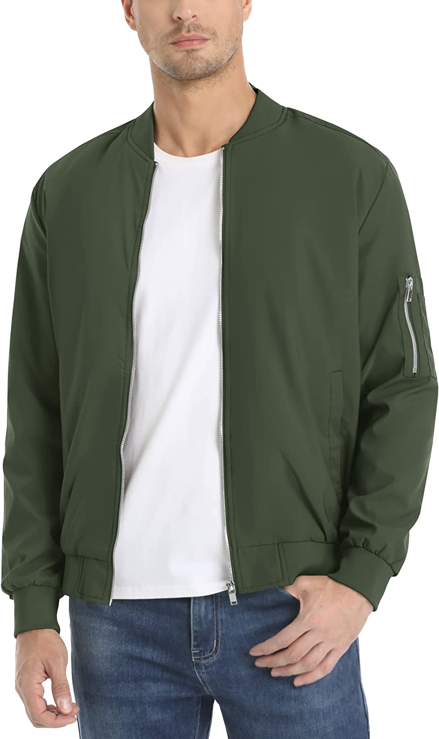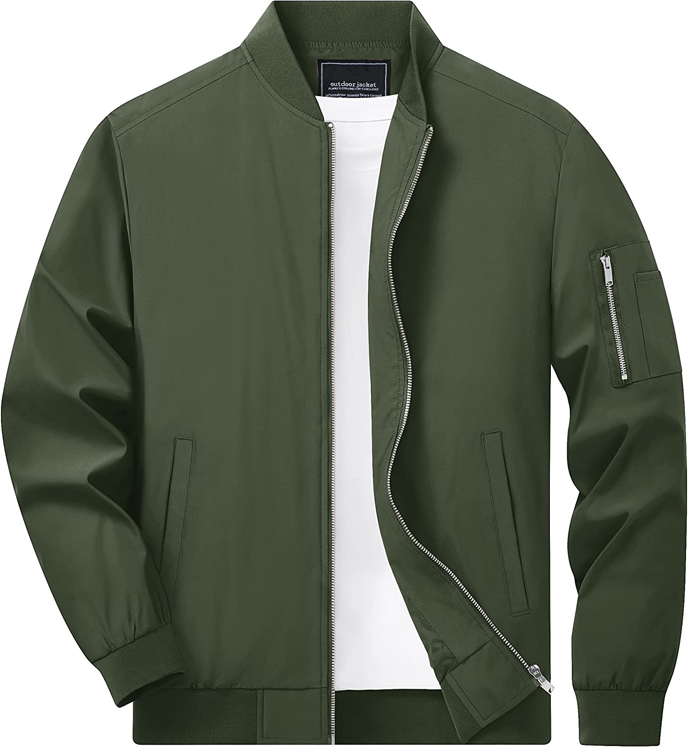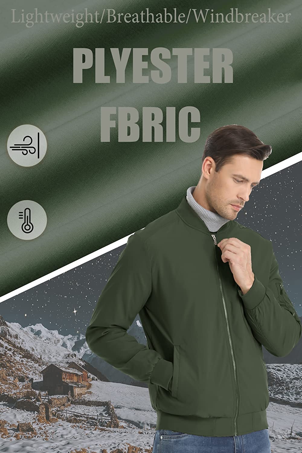 TACVASEN Men's Lightweight Jacket Casual Spring Fall Windbreaker Bomber Zip Up Coat with Pocket