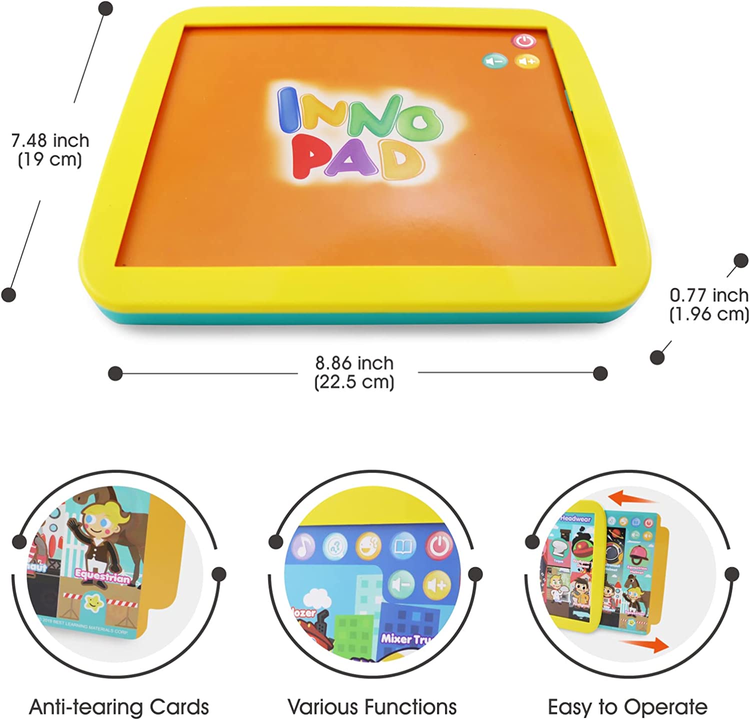Comes with 8 durable plastic (PP) learning cards (16 lesson pages) and volume control. Take learning activities on the go; perfect for long car or plane rides. Great gift idea for preschoolers; boys and girls.