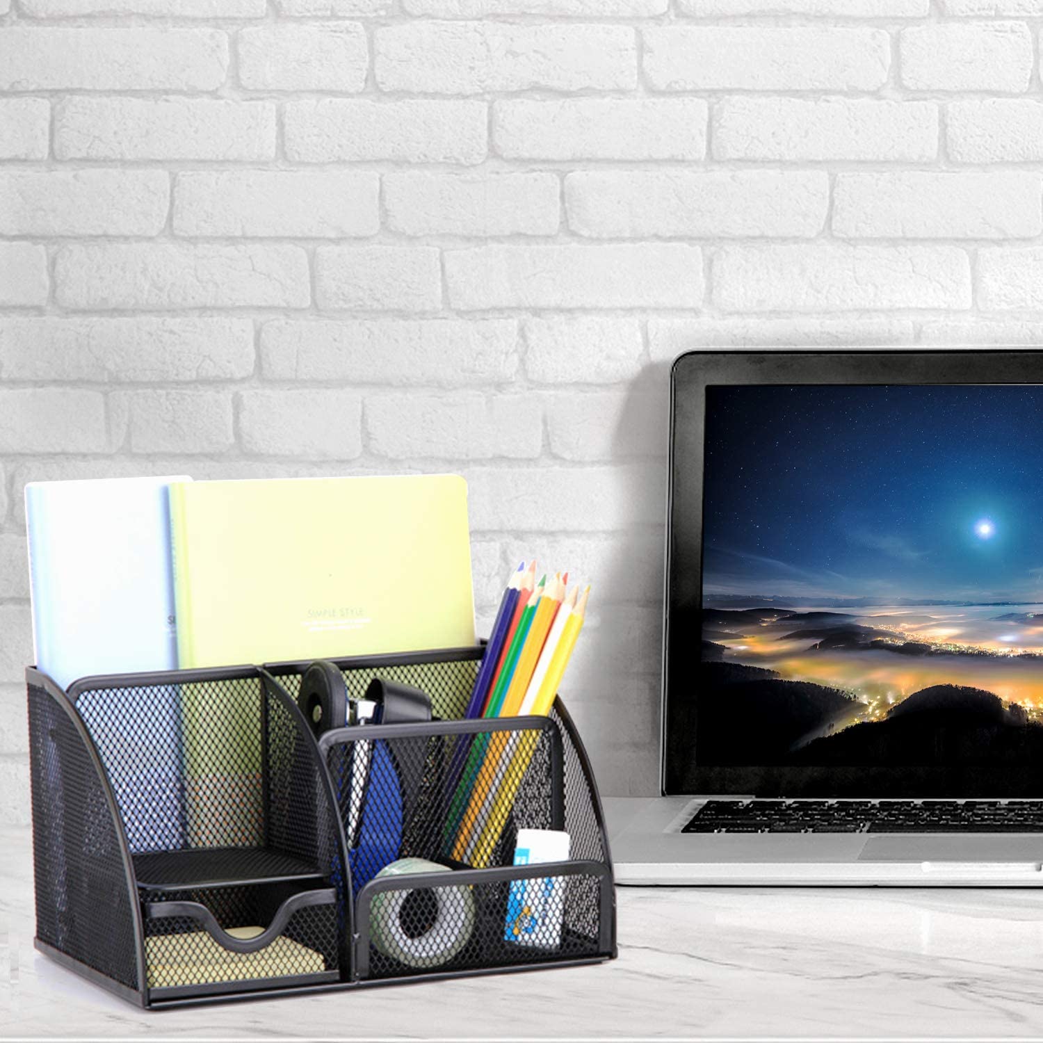 MDHAND Office Desk Organizer and Accessories Desk Drawer Organizer with 6 Compartments, Mesh Pencil Desk Organizer For Home Office