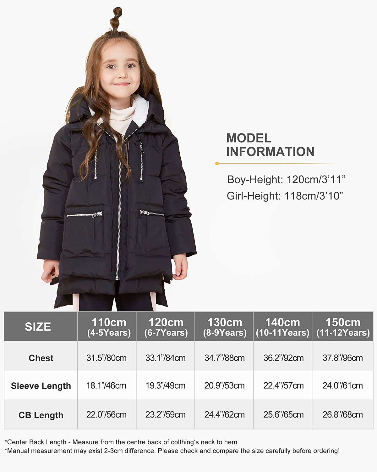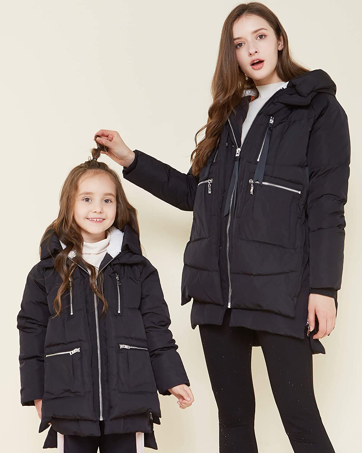 • Adopts windproof & water-resistant fabric, and high quality white duck down, this parent-child overcoat is excellent warm-keeping for cold weather.