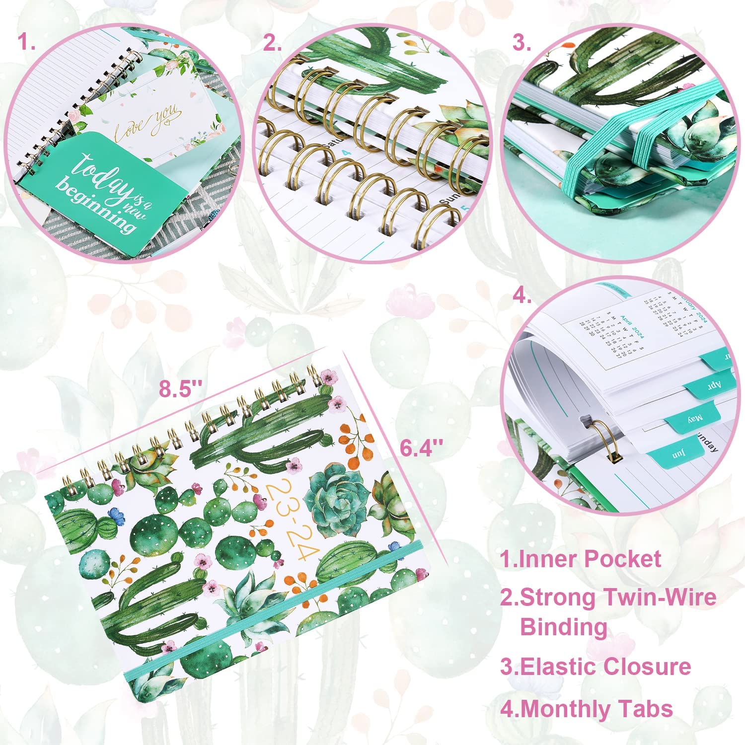 2023-2024 Planner - Planner 2023-2024, Weekly & Monthly Planner, Jul 2023 - Jun 2024, 8.5" x 6.4", Planner with Hardcover, Twin - Wire Binding, Monthly Tabs, Inner Pocket, Elastic Closure, Daily Organ