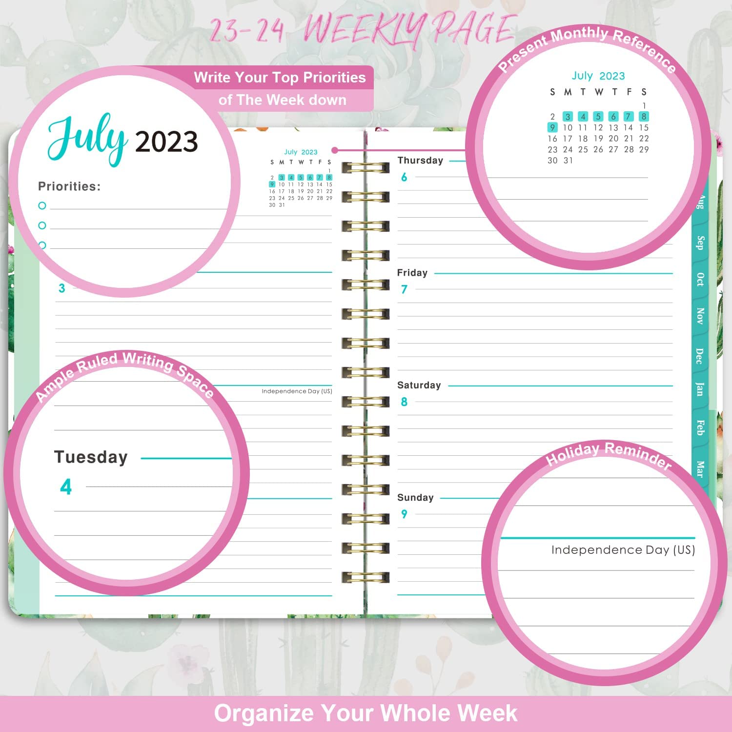 • ?OVERVIEW - 2023-2024 weekly & monthly planner with colorful, eye-catching hardcover is from Jul 2023 - Jun 2024. The size of this planner 2023 is: 8.5" x 6.4" which is comfortable to carry and use.