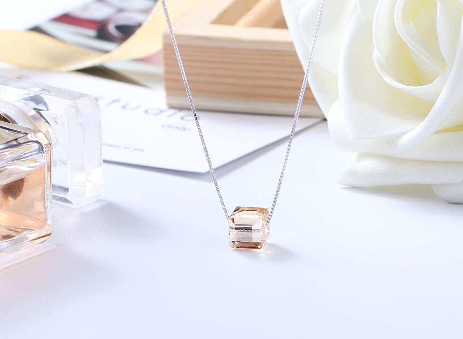 UNIQUE DESIGN This simple but elegant cubic pendant was made of Champagne Gold crystal which sparkles all the time by refracting light from different angles. Champagne Gold is often used with Crystals.The ability as an amulet will increase by using it with crystals.