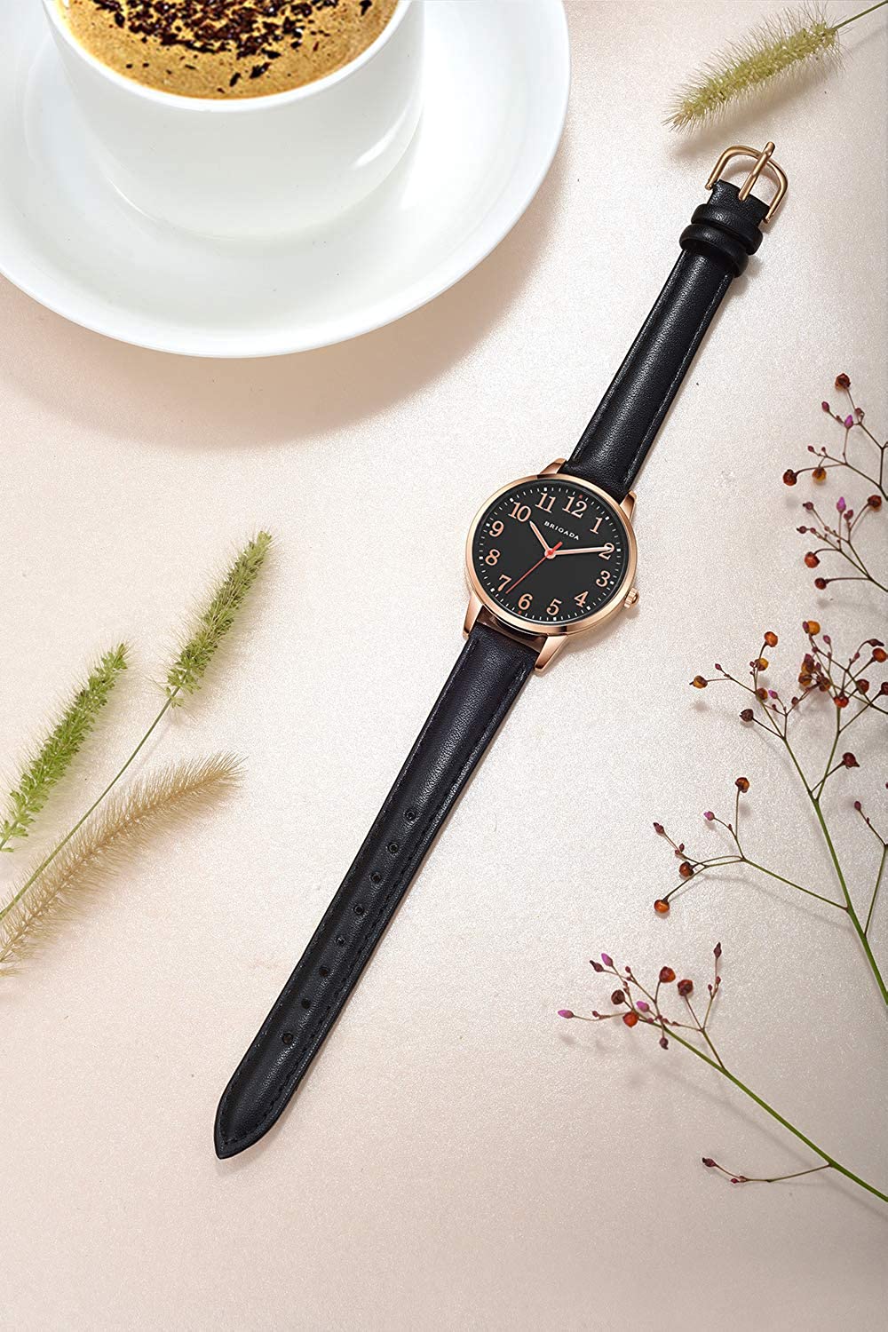 BRIGADA Women's Watch Elegant Watch for Women Leather Band Ladies Watch for Women Waterproof