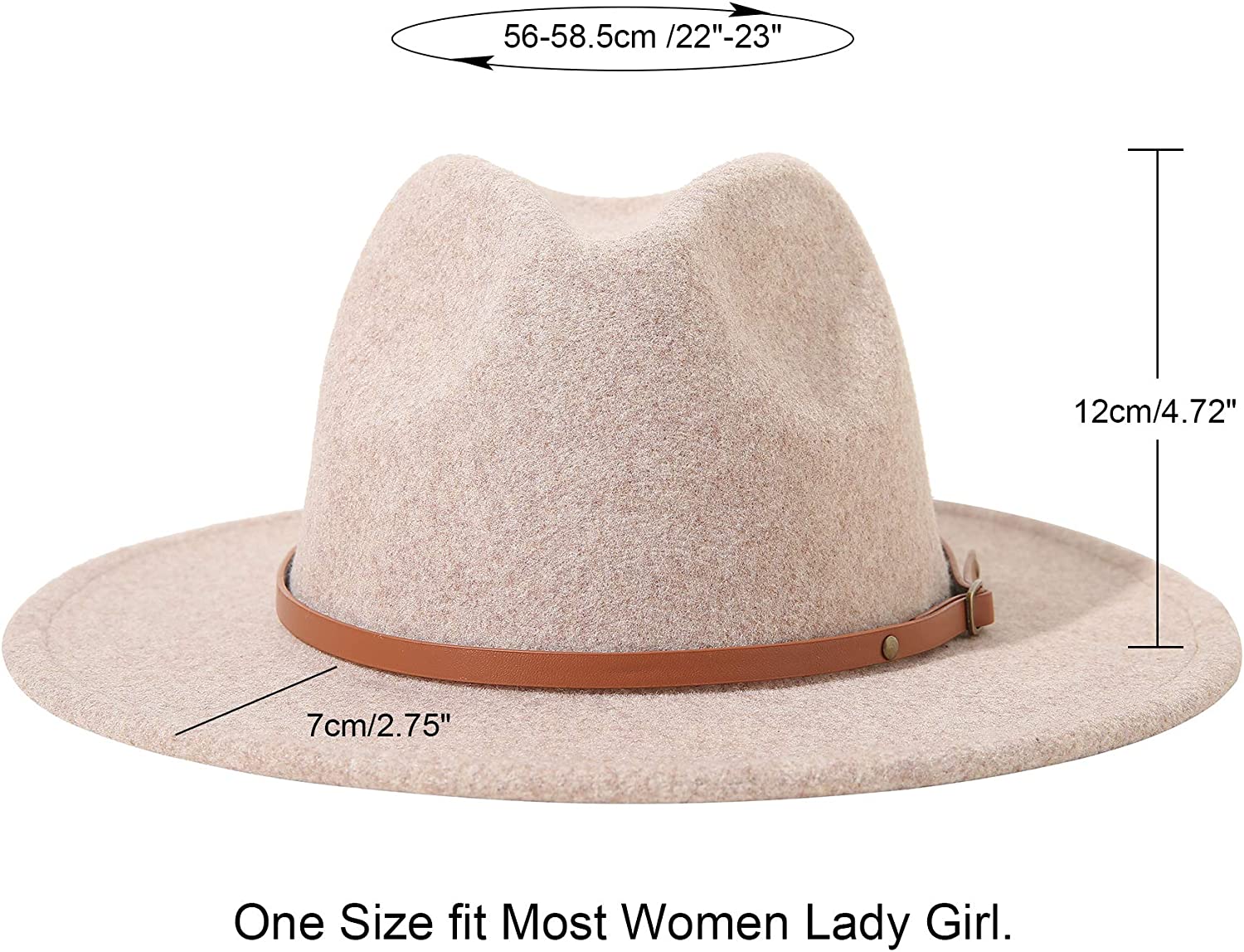 Lanzom Women Lady Classic Wool Fedora Hat with Belt Buckle Felt Wide Brim Panama Hat