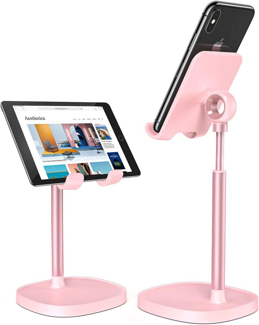 WEIGHTED ANTI-SLIP BASE: This cell phone stand for desk is equipped with a weighted base and an aluminum alloy rod. Therefore, this iPhone stand holder is stable enough to support all smartphones or small tablets, such as 2021 iPad Mini, iPhone 14 pro max 13 Pro/13 Mini/12/12 Pro/12 Pro Max/12 Mini/iPhone 11/11 Pro/Max/X/MAX/XR/8/8P, Samsung Galaxy S21, S20, Note 10/9/8/Plus, S10/S9/S8, Kindel, Switch, iPad Mini,iPad Air, etc.We recommend the most stable compatible device size is 4-10 inchs