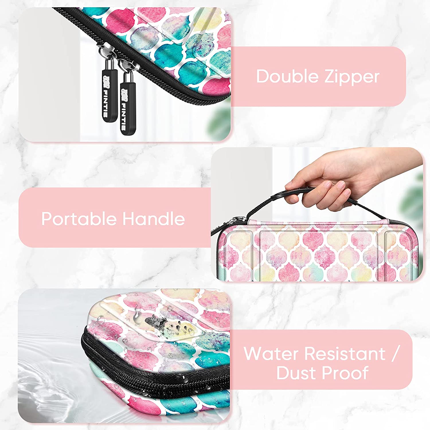 - Built-in Elastic Strap to fasten the Nintendo Switch / Switch OLED Model, so it won't collide with other things while in the case. Open and close easily with Double Zipper.