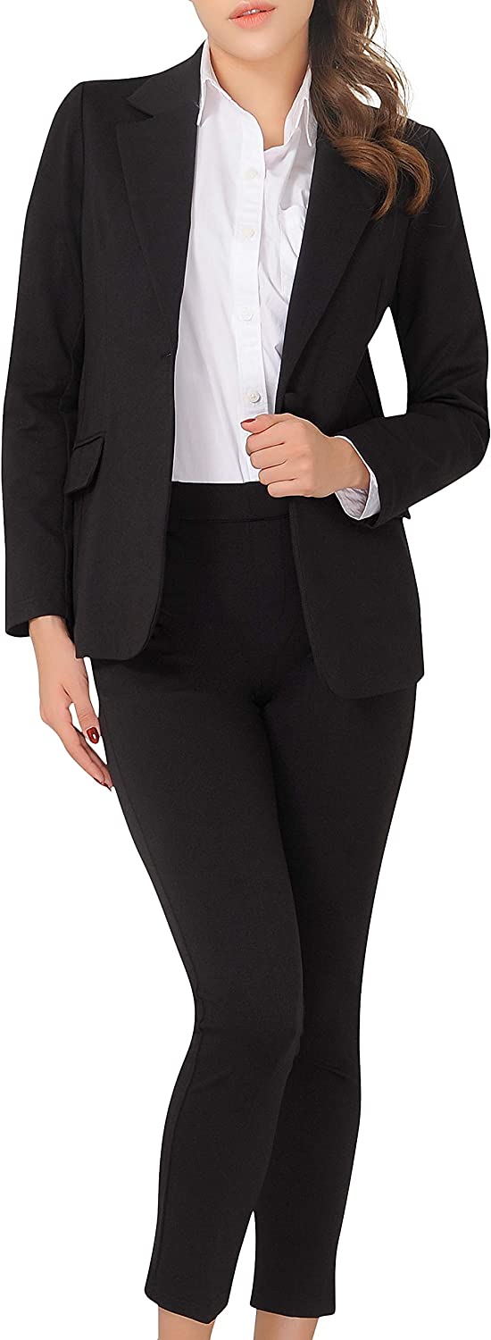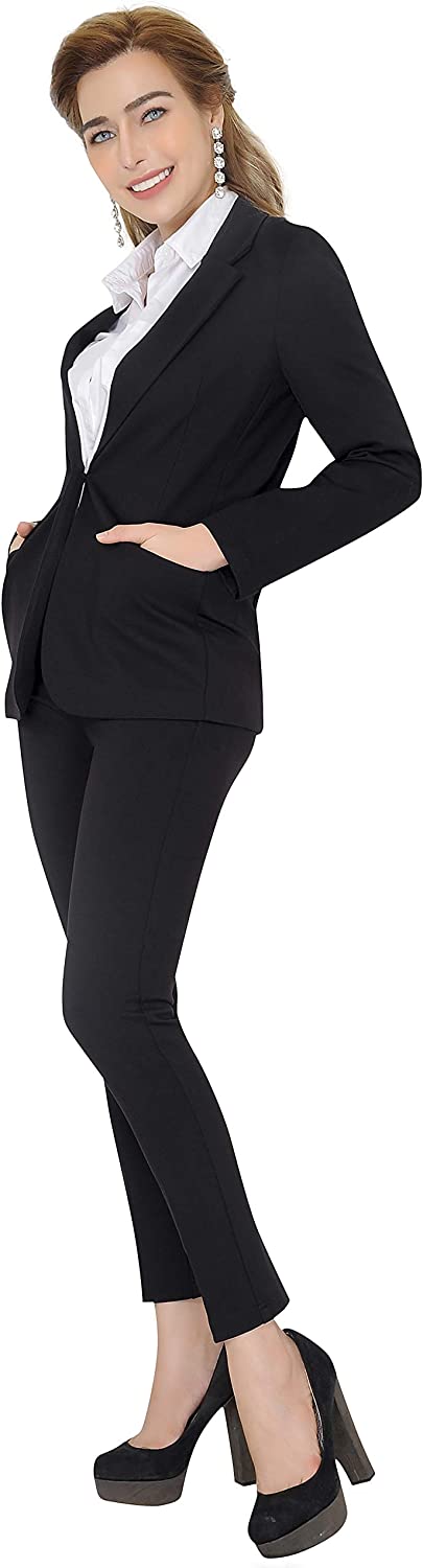 MOST COMFORTABLE PANT SUITS you'll ever wear to work: - Made of Durable, Ultra-comfy, 4-way stretch ponte fabric. You can look professional in office while performing hardest yoga postures in Lunch time.