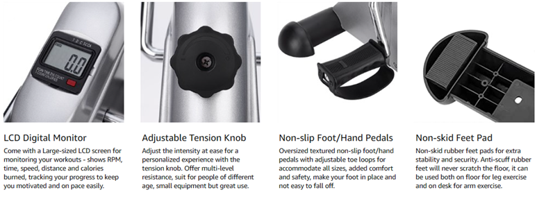 - 【Easy Assembly】: Pedal exerciser with all supplied accessories, in few minutes and without asking for any tools. The anti-slip pedal and the non-slip bike foot provide excellent attachment and will not slip during exercise.