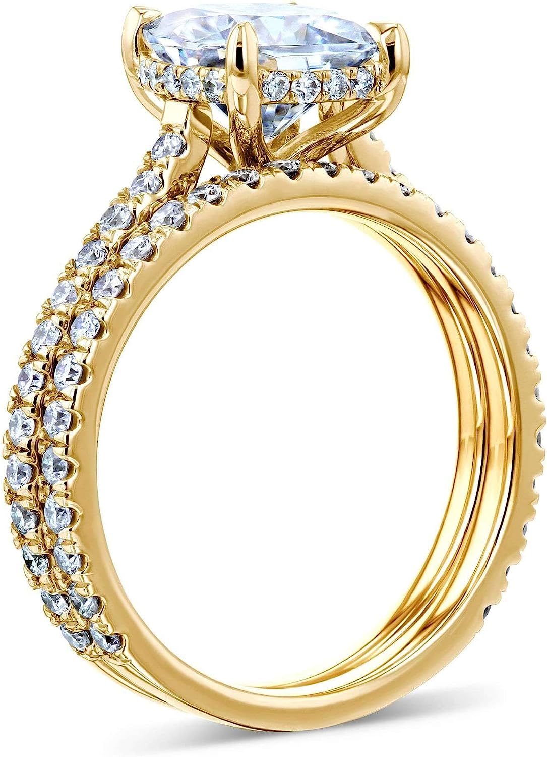 Kobelli 2ct Cushion Moissanite Drop Halo Bridal Set (HI/VS)