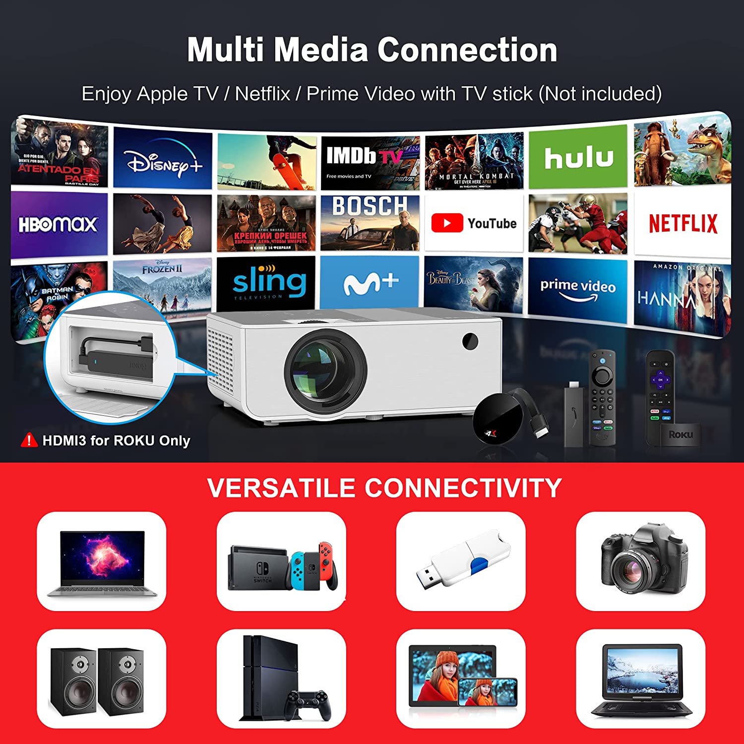 HDMI Port: compare to most of other home LED projectors which with 1 or 2 HDIMI port, FANGOR Projector equipped one more HDMI Port (HDMI 3) that customized only for stick of TV; it offer you more way to spend your great time.
