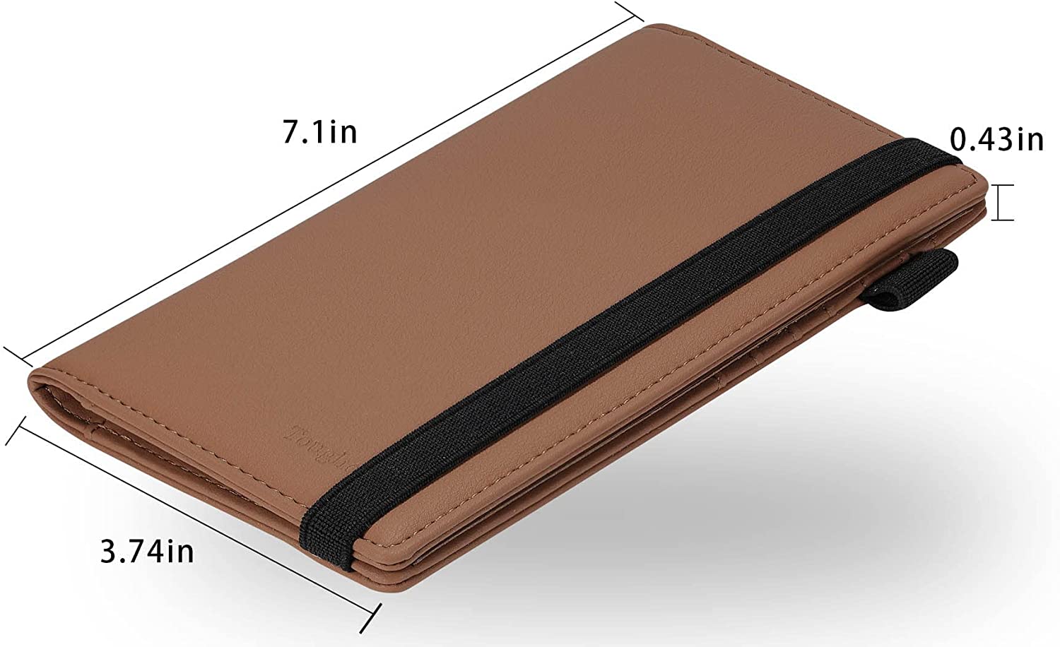 • DIMENSION: 7.15” x 3.75” x 0.75”. MATERIAL: refined vegan leather
