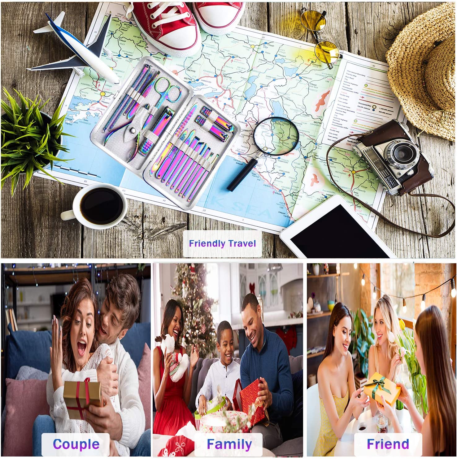 - 【2020 New Unique Design】: Our rainbow manicure kits, its highlight is rainbow tools with a rainbow PU leather texture case, feel comfortable, fashion and practical. This will be the first time on the market in 2020. You will be amazing about it. Beautiful leather covers will never go out of style, have a comfortable feel and are easy to trim. It will be an excellent quality gift for christmas, birthday, anniversary and marriage.
