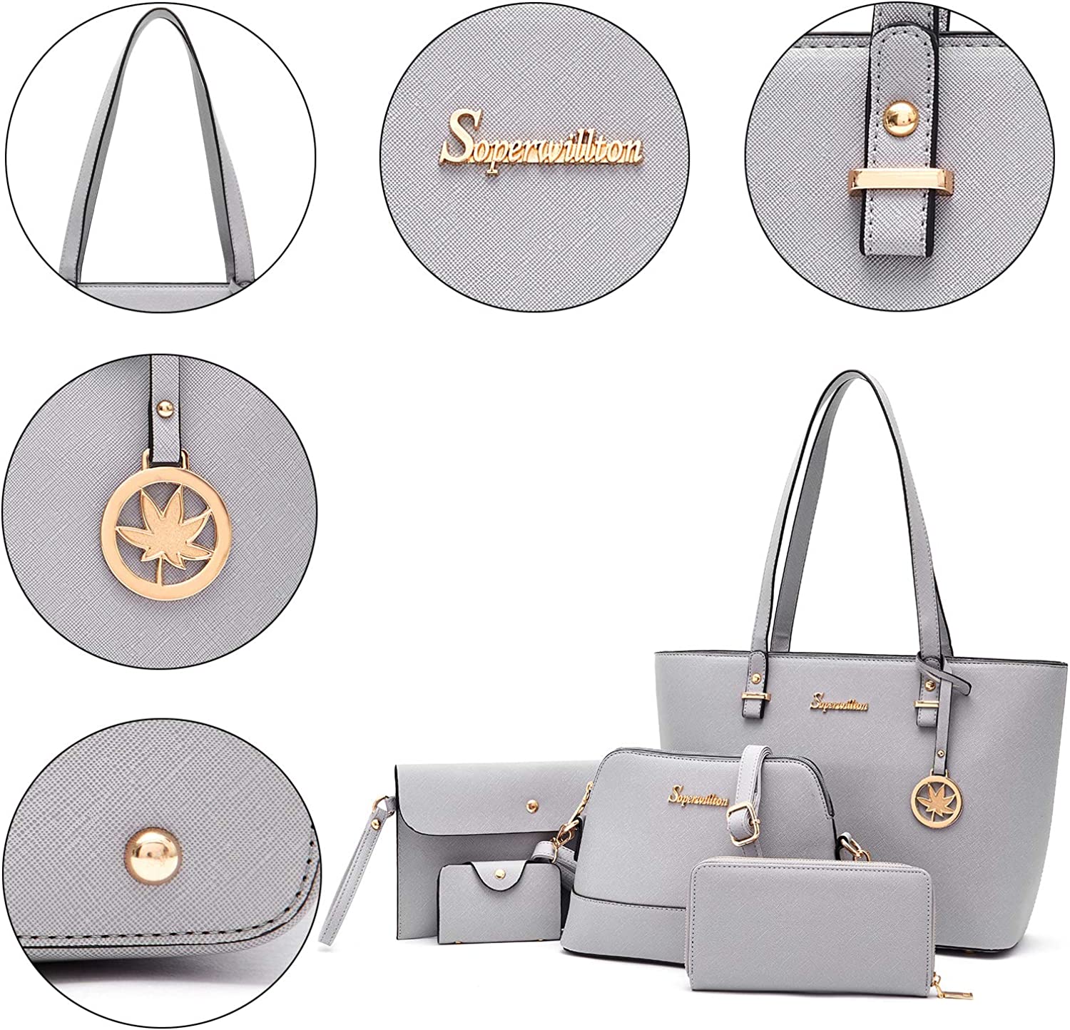 【Pockets】 Tote bag: One main compartment with one interior zipper pocket and two slot pockets. 5pcs purse set include large tote handbag, messenger bag, wallet, clutch and card holder. The purse set can hold your iPad, wallet, makeups, phone, little water bottle, perfumes, gloves and other daily use and keep them organized.