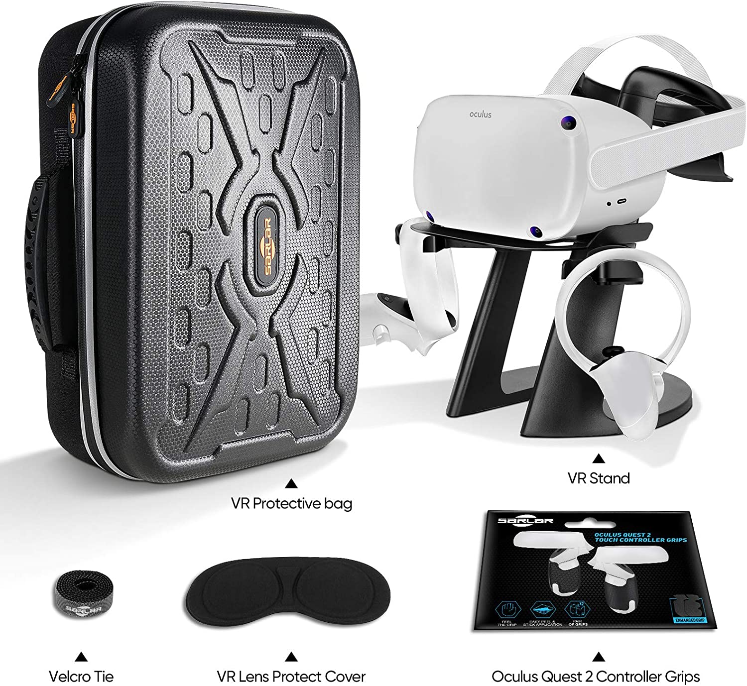Safety: Made of hard EVA lightweight material,Fixed elastic band inside, waterproof, Shockproof, Stylish and Durable Guaranteed to prevent any damage to your Oculus Quest 2 VR Gaming Headset and its accessories.
