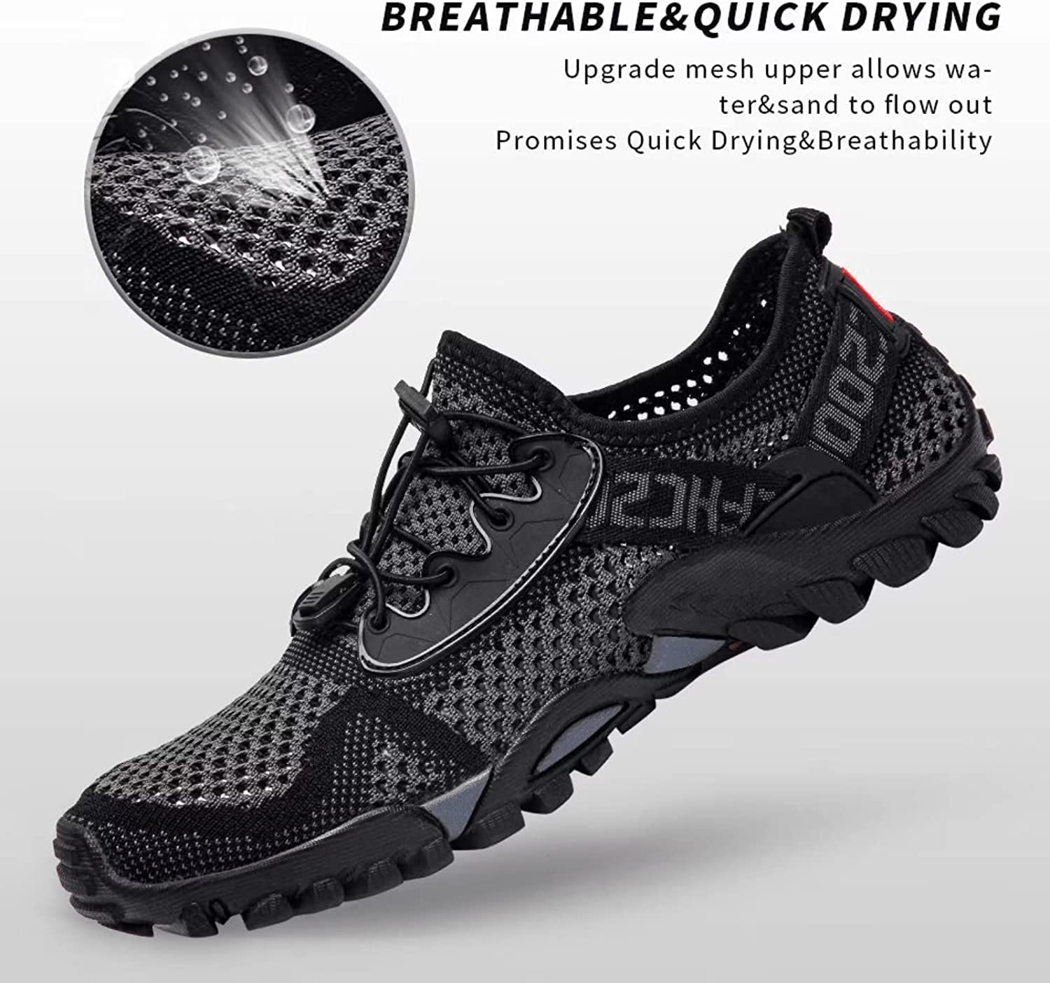 - QUICK DRYING AND COMFY: Water shoes with open mesh upper promises quick drying and breath-ability, let each step cool, dry and comfy.
