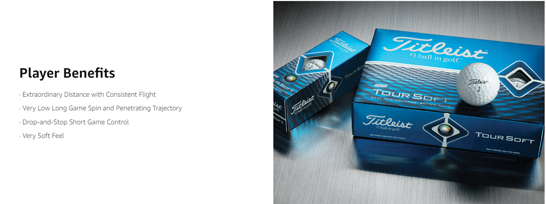 Titleist Tour Soft Golf Balls REAL PERFORMANCE. BETTER GAME. The all new Titleist Tour Soft golf ball delivers responsive soft feel, commanding distance, and excellent short game performance. Now available in both White and High Optic Yellow. BENEFITS Responsive Soft Feel Faster Ball Speeds for Category-Leading Distance Increased Short Game Spin A More Penetrating Ball Flight Improved, Easy Alignment FEATURES Reformulated, Larger and Faster Core Thinner 4CE Grafted Cover Spherically-Tiled 342 Cuboctahedron Dimple Design New Alignment Stamp