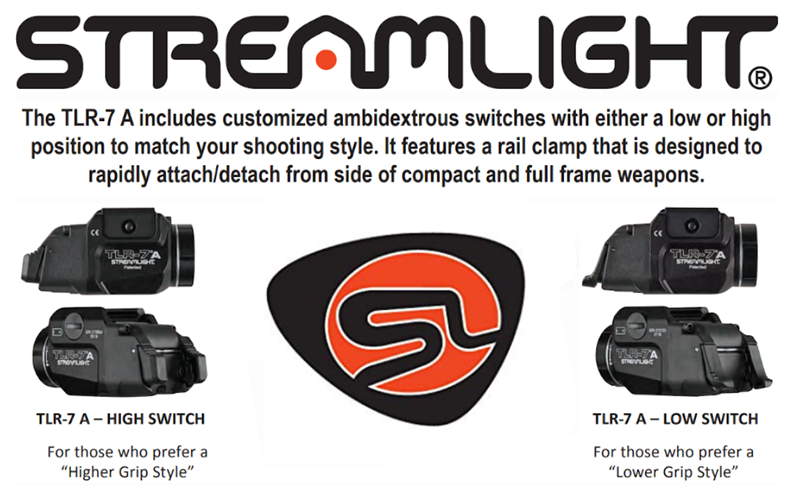 The TLR-7 A includes a customized ambidextrous on/off rear switch in either a Low or High option to match your shooting style. It features a rail clamp that is designed to rapidly attaches/detaches quickly and safely with no tools and without putting your hands in front of muzzle. Securely fits a broad range of full-sized and compact guns. Durable, anodized machined aluminum construction and user enabled strobe function. Engineered optic produces a concentrated beam with optimum peripheral illumination. 2.58-Inch (6.55 cm); 2. 4 oz (68.1g).