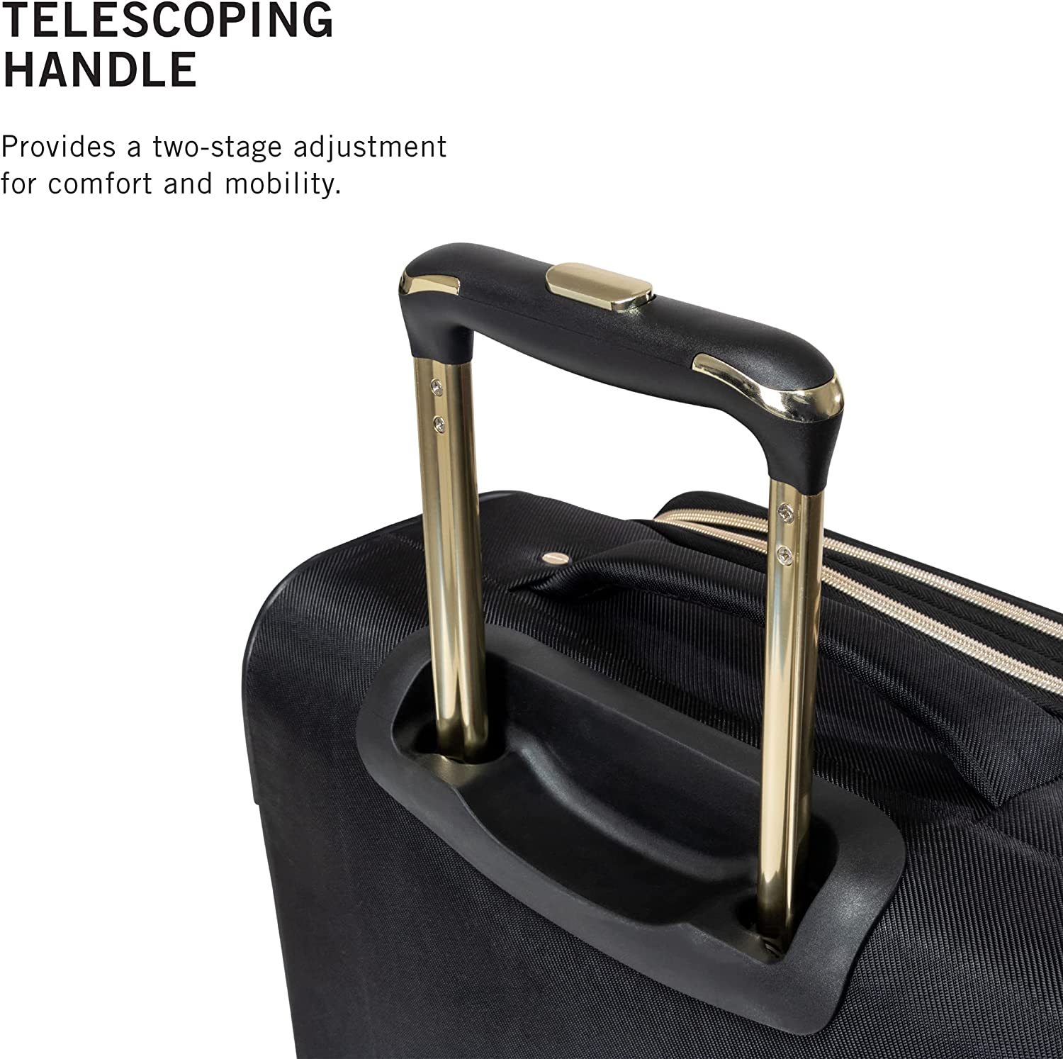 Finally, travel made trendy with the stylish polyester-twill chevron luggage from Kenneth Cole Reaction’s Chelsea luggage collection. Complete with a fully lined, tear-resistant interior, this luggage also expands an additional 2.0 inches, ensuring that you have plenty of space for all your needed belongings. Its lightweight construction helps you meet airline weight restrictions to avoid unnecessary airport fees, while its 8-wheel spinners provide effortless 360-degree navigation allowing you to glide quickly through the airport. The main compartment interior features a hanging side zipper pocket and garment restraints to hold belongings in place. The under-the-lid section includes a mesh zipper pocket and a transparent, clear PEVA gusseted pocket for toiletries. The front exterior also features a small zipper pocket for easily accessible items and a large gusseted zipper pocket for additional storage organization. Padded top and side handles allow for easy maneuvering, and a bottom grab handle allows for easier lifting. Additionally, a retractable trolley handle extends to be 41 inches tall with a locking push button mechanism. Fashionable and functional, Chelsea luggage also boasts fashion-forward gold hardware with premium self-repairing coil zippers designed for long-lasting use. Carry-on size meets most U.S. based airline carry-on size requirements and fits into most airline overhead bin compartments. Backed by a manufacturer 10-year limited warranty. ★ Overall Dimensions: 22.0” H” x 14.0” L x 9.0”-11.0” D. ★ Packing Dimensions: 20.0” H x 13.5” L x 8.5”-10.5” D. ★ Weight: 6.35 lbs. ★