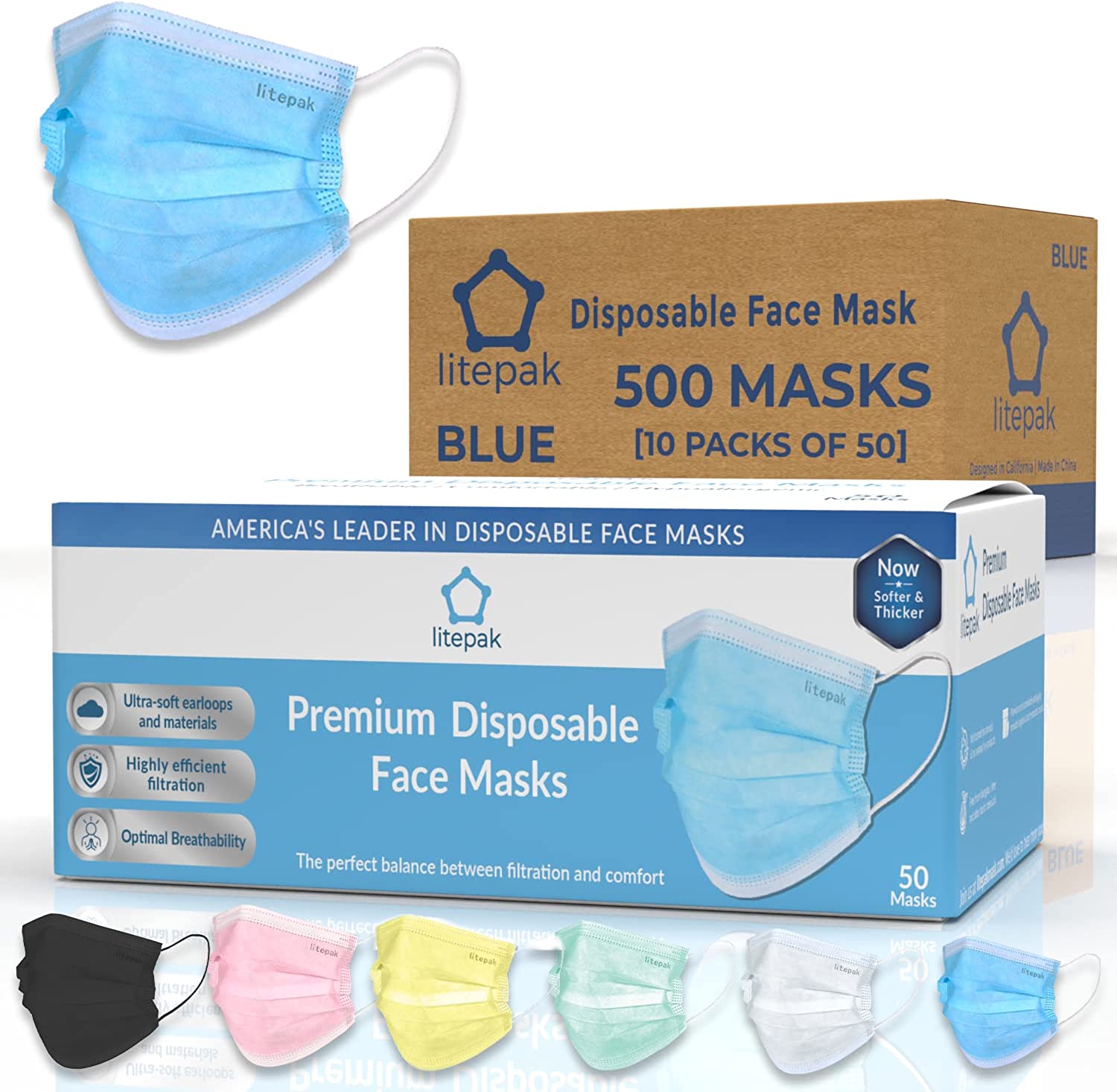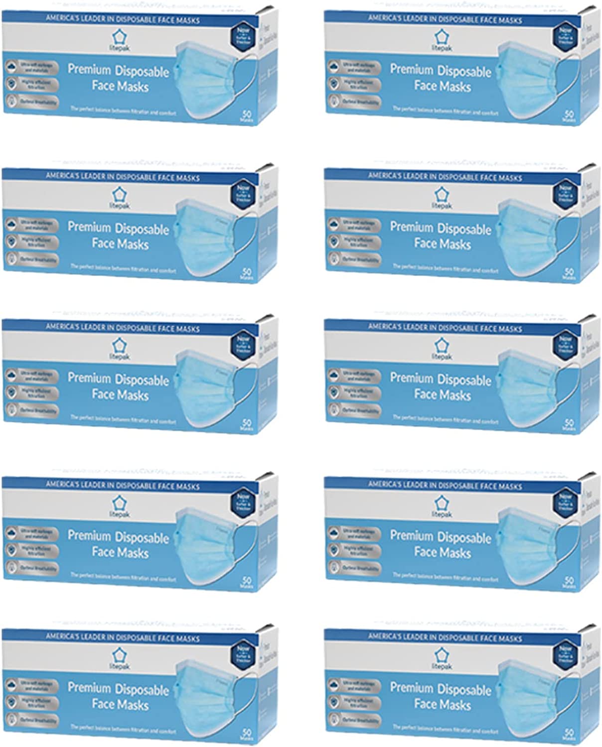Litepak 500pcs Premium Disposable Face Mask SOFT 3ply Nose Wire
