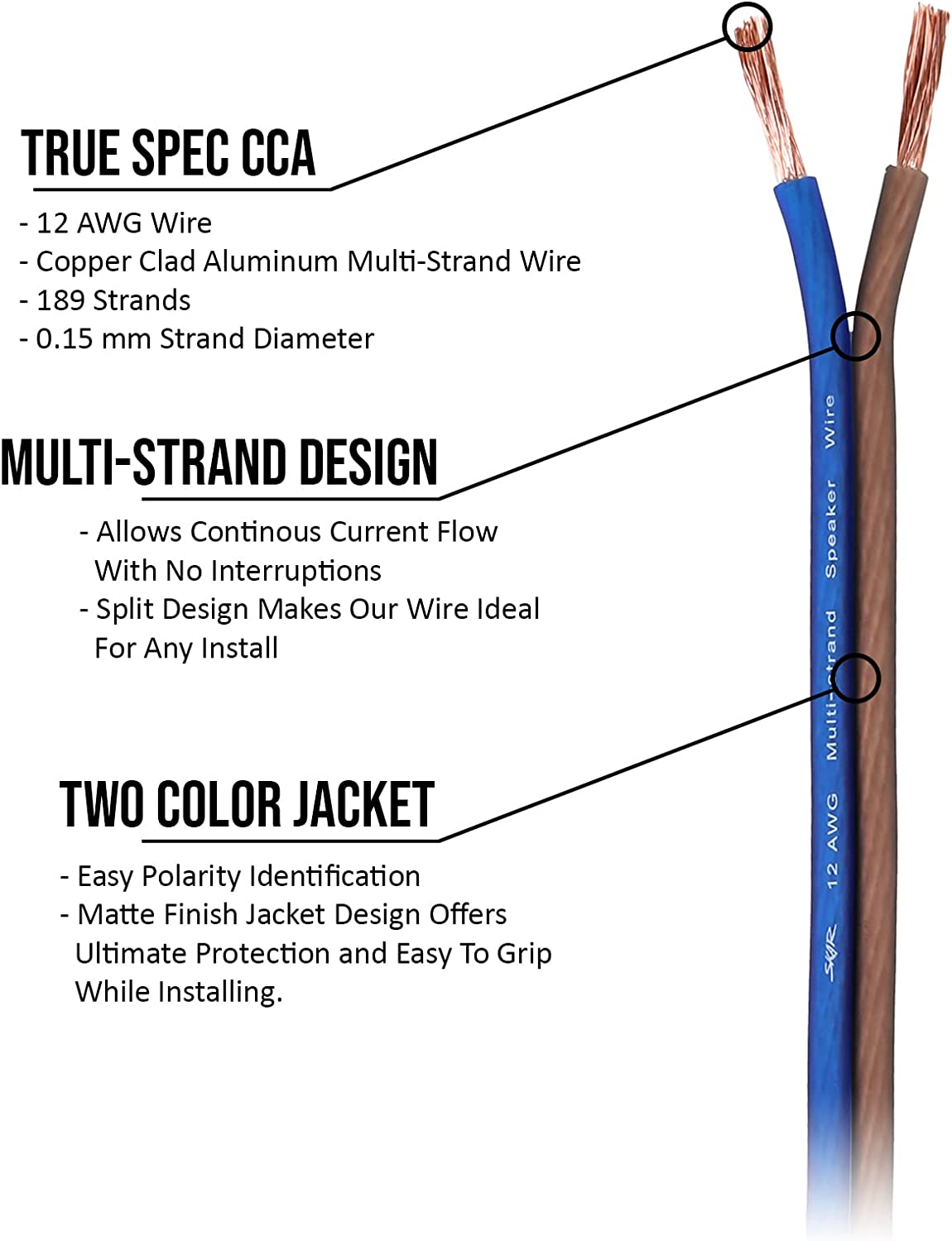 14 Gauge (AWG) Premium Car Audio Speaker Wire for Connecting Speakers, Subwoofers, and More
